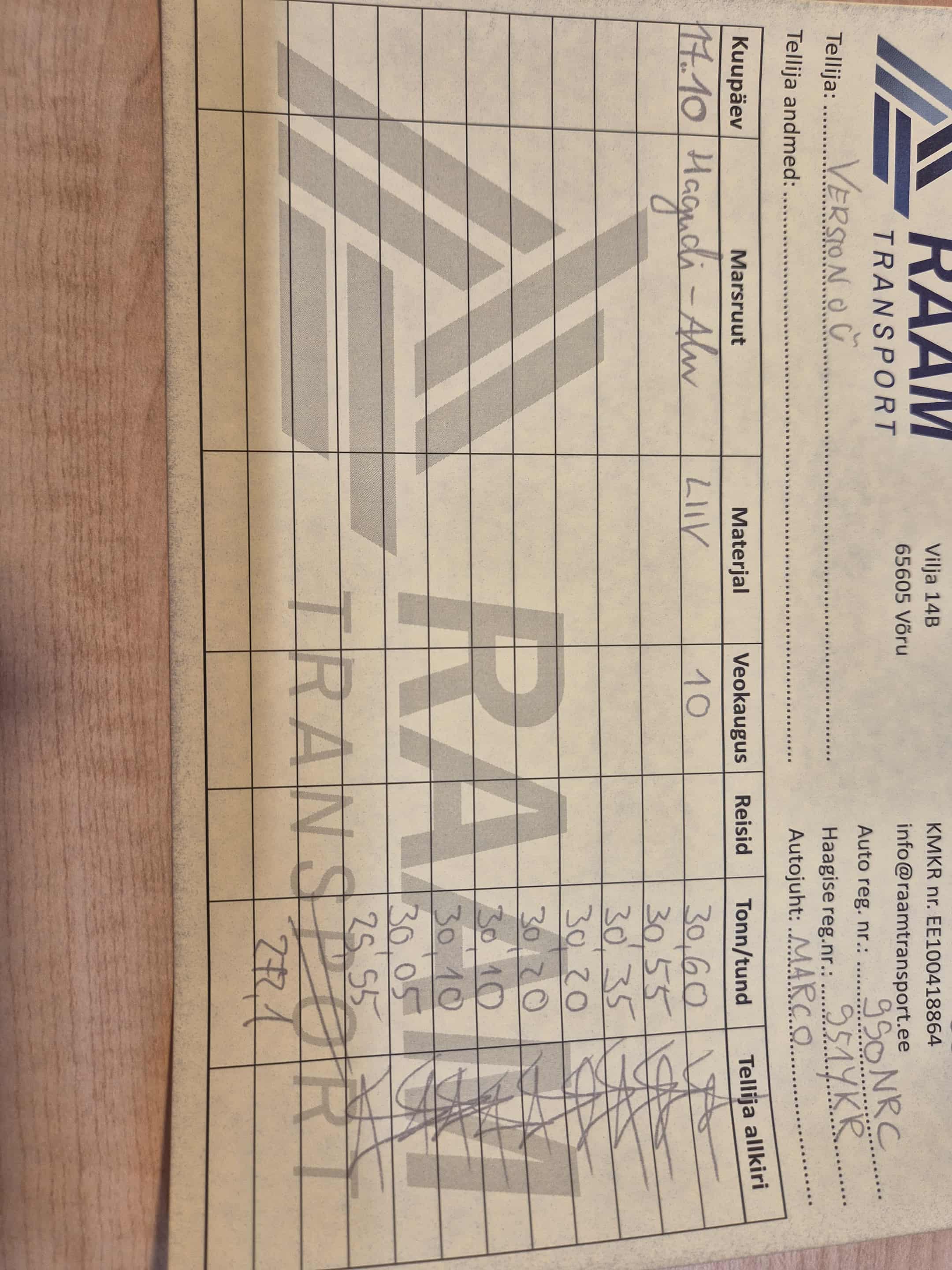 arvesse lubatud 5% kaalumisvea, ületas veok registreerimisnumbriga 990NRC 17.10.2024 liiva