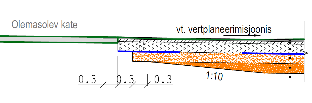 - Ristmiku kokku viimine riigitee kattega – puudub lõikejoonis. Kokku viimine peab olema astmeline.