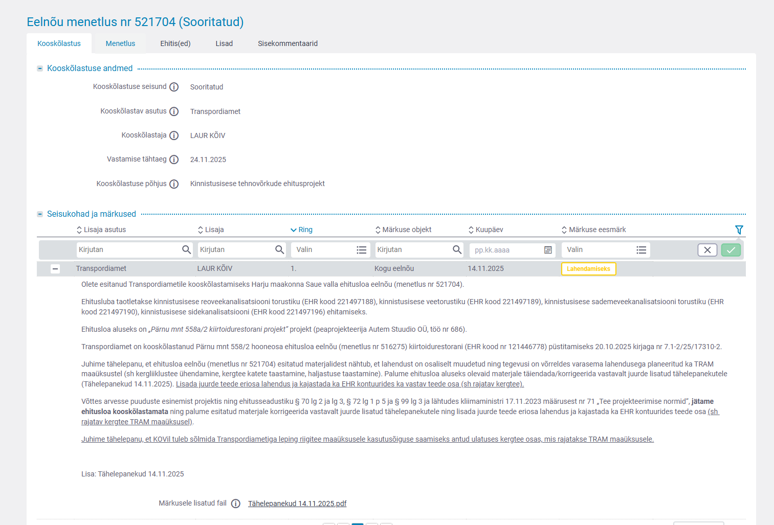 | Sari | 7.1-2 Väliste isikute ehitiste ja lubade kooskõlastamise dokumendid |