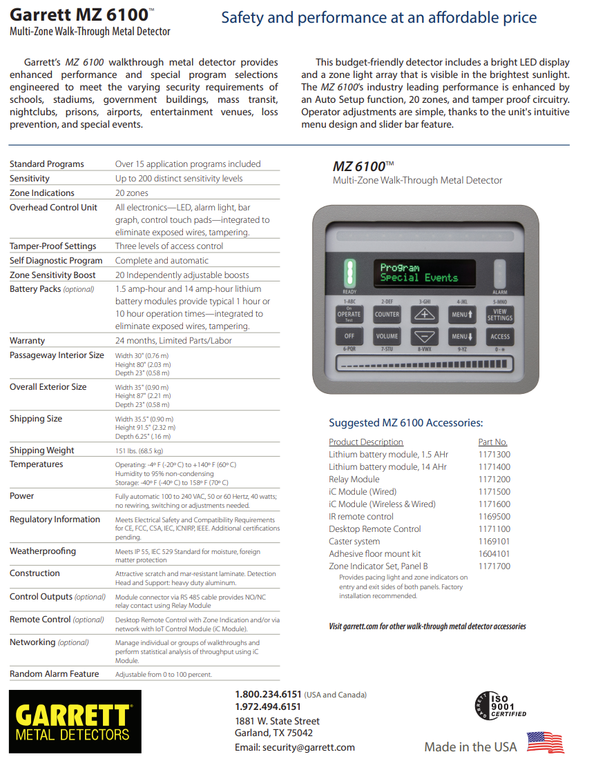 üksnes toodud üldine nimetus: Garrett MZ 6100/Multizone – Model 11710xx, mis