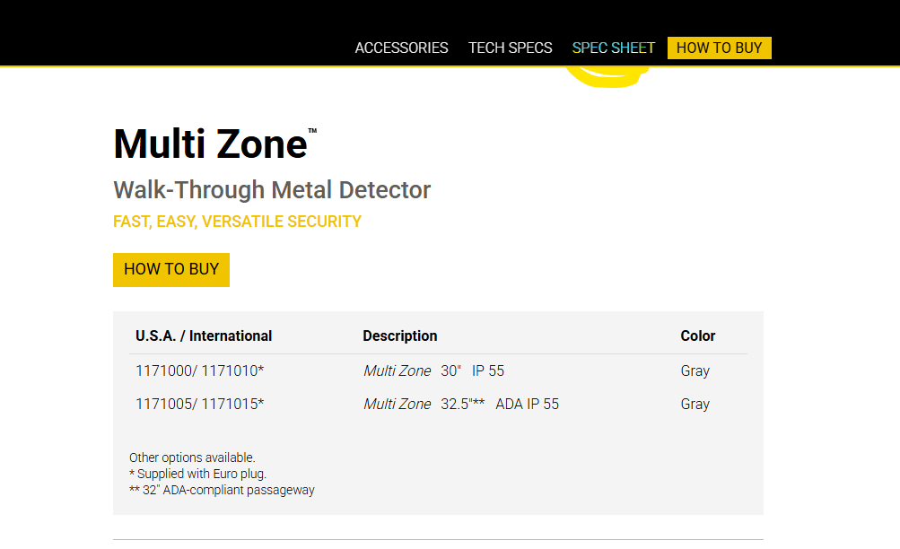 esitamata pakutavate metallidetektorväravate täpse mudeli nimetuse, mistõttu ei olnud