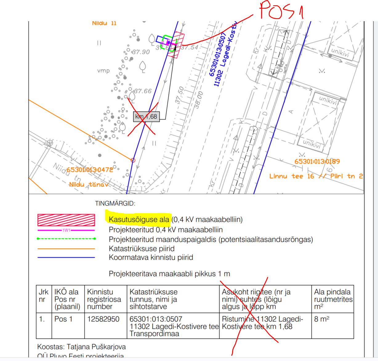 Palume asendiplaanilt eemaldada km nr ja tabelist tulp „Asukoht riigitee..“ antud andmete esitamist enam ei nõuta ning km nr ei ole ka hetkel täpne.