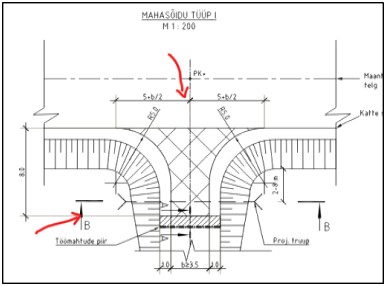 olev maapindPaekillustikust alus kahes kihis.Aluminekiht fr. 32/63, ülemine fr.16/32, kiilekillustik fr. 8/12, kulu 25kg/m²(Emin 170MPa) Keskliiv hmin-25cm (filtr.m ≥ 1,0m/ööp)