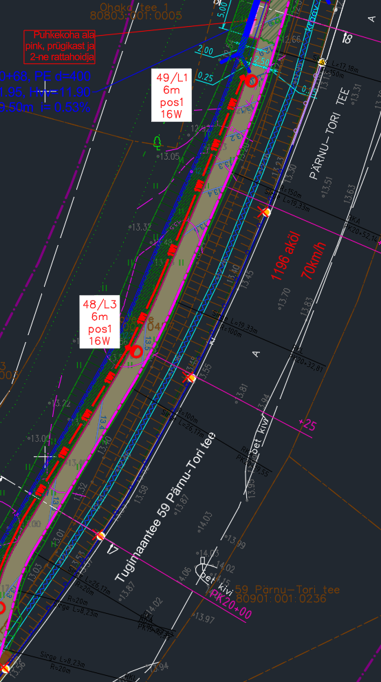 - Kuna piire peab olema katte servast vähemalt 0,5 meetrit, tuleb lõik PK 19+75-20+70 täiendavalt projekteerida, et piirde taga oleks ka tagatud 0,25 meetrine kindlustamata peenar.