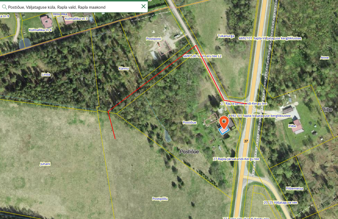 Täname, et olete pöördunud meie poole sooviga saada teada, kas ja millistel tingimustel on võimalik rajada Postipõllu kinnistule (katastritunnus 66904:003:0432) juurdepääsu riigiteelt nr 27 Rapla-Järvakandi-Kergu tee. Lisatud asendiplaanil on näidatud juurdepääsutee soovitav asukoht riigiteelt orienteeruvalt km 2,857.