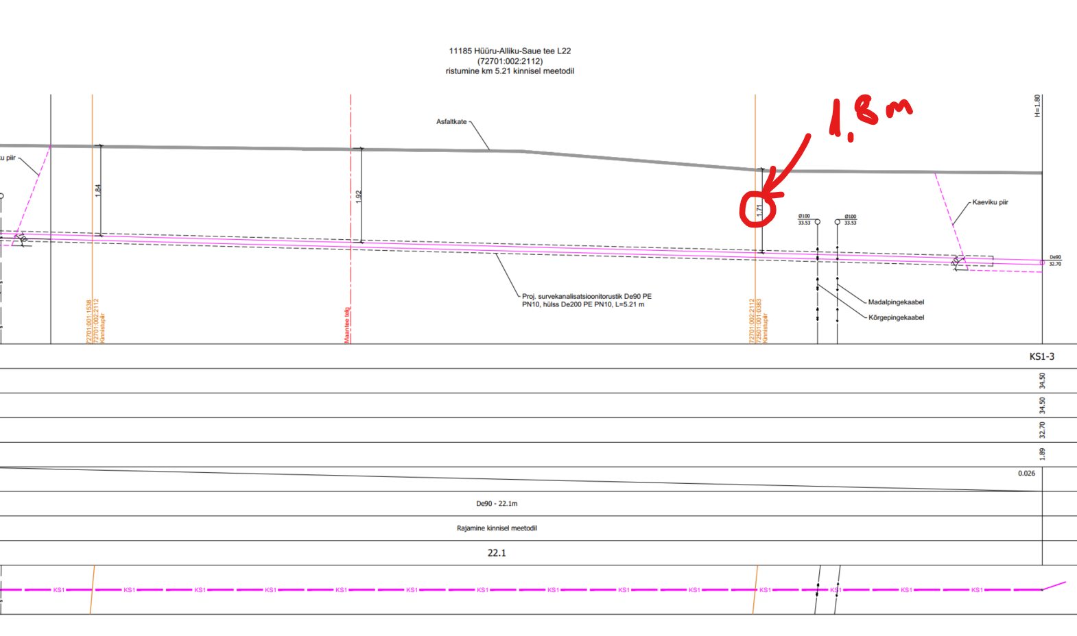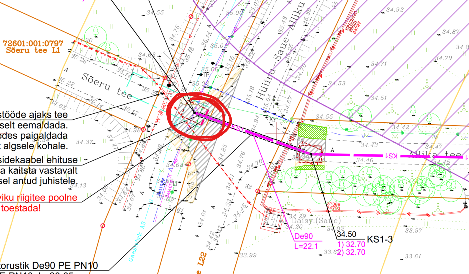 mahasõitudega kavandada teemaa piirides kinnisel meetodil, suundpuurimisega ning võimalikult täisnurga all (70°-110°). Läbiviik tee muldkehast teha vähemalt 1,5 m
