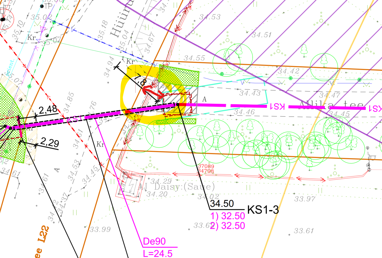 Saadame tutvumiseks korrigeeritud Alliku tee kanalisatsiooni plaani.