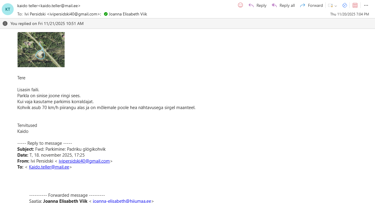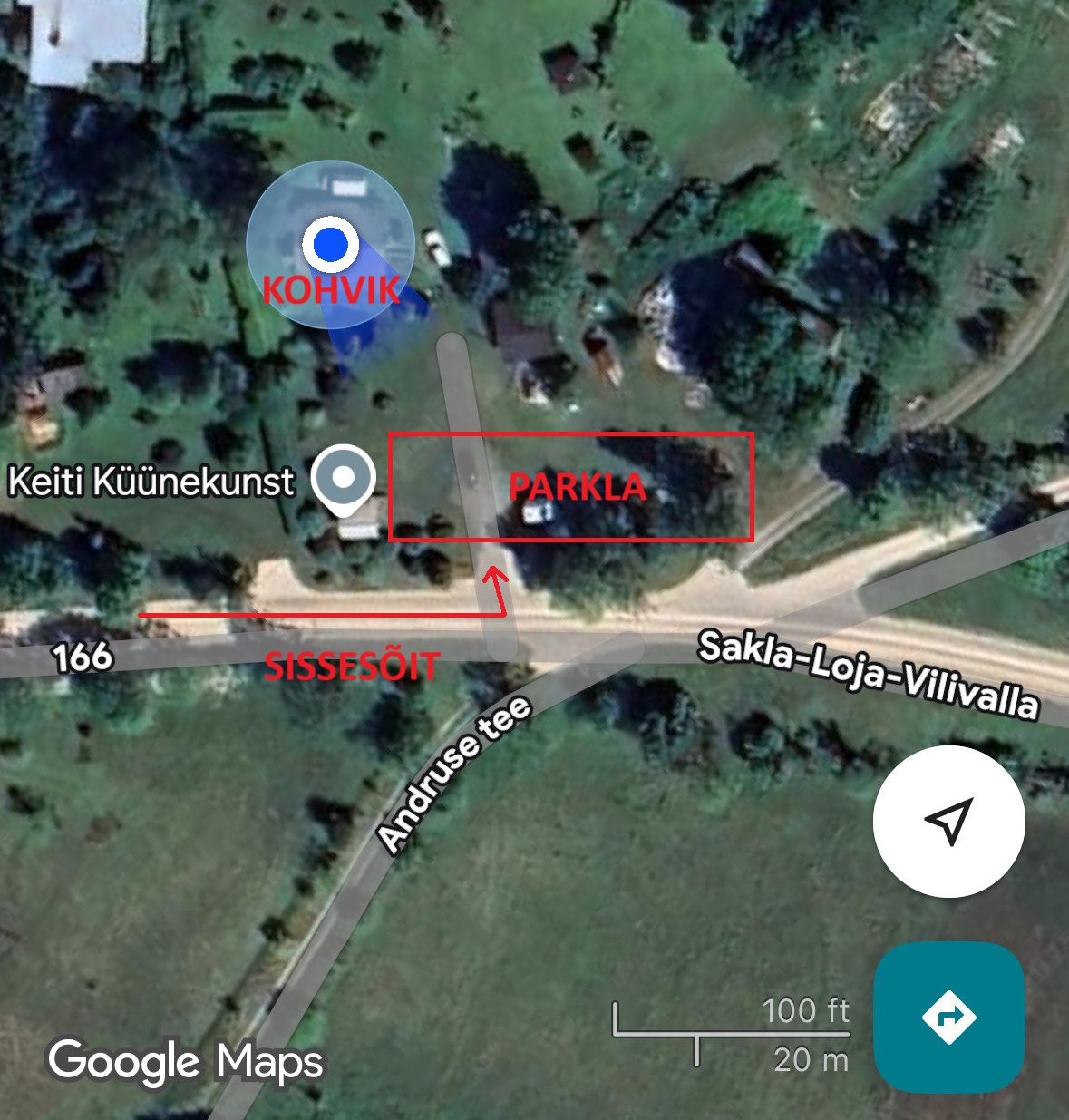 3. Kõmmuste juures – Riigitee 12166 Sakla-Loja-Vilivalla tee (km 0,25) ääres, parkimine kinnistul (joonis lisatud)