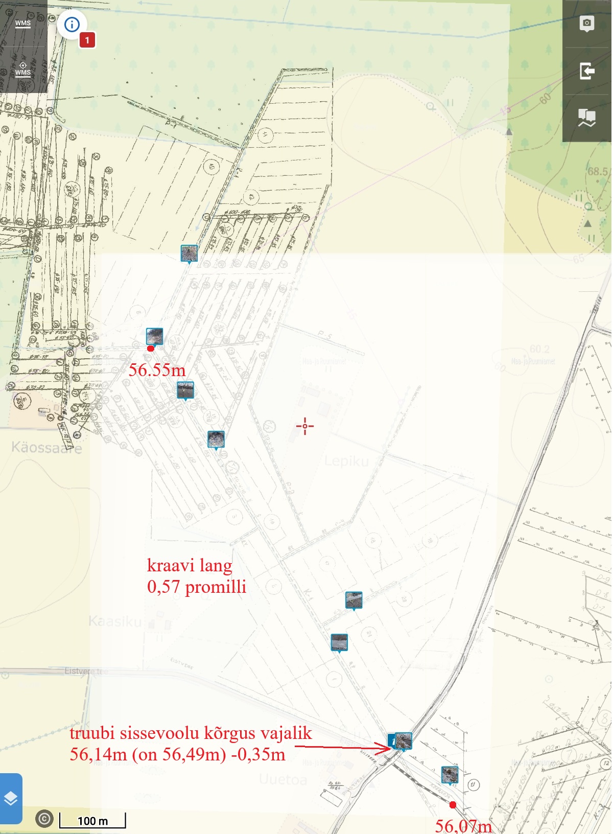 liiga kõrge. Maaparandussüsteemi toimimise jaoks vajalik truubi sissevoolu kõrgus peab olema (kraavi langu arvestades) 56,14m. Truubi sissevoolu kõrgust on vaja