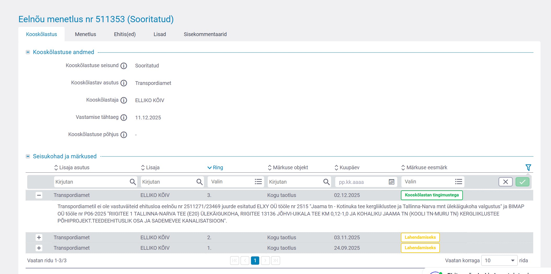 | Vastutaja | Elliko Kõiv (Users, Teehoiuteenistus, Planeerimise osakond, Tehnovõrkude üksus) |