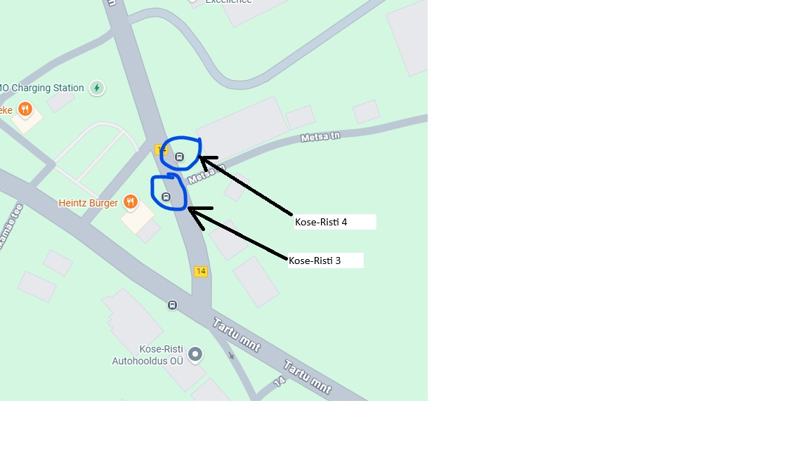 Samas moodustab tabeli järgi K7 peatuse kasutusest mõlemal juhul peaaegu poole kogu sisenejate arvust. Samas tuleb arvestada, et kui näiteks 2024.a oli Kose-Risti 4 peatuses sisenejaid 902 inimest ja kui eeldada, et need sõitjad tulevad samasse kohta ka bussiga tagasi, siis väljuvad nad hoopis teisel pool teed olevas peatuses ehk peatuses Kose-Risti 3. Sellisel juhul oleks peatuse kasutajaid mõlemal pool teed kummagi peatuse sisenejate summa ehk siis 1252 inimest. Kui eeldame põhilise liikumise aja tööpäevadele ehk ca 20 päeva kuus ja jagame kõik liikumised päevade arvuga, siis võiks mõlema peatuse kasutus olla ca 5 inimest päevas. Ja see arvestab ka liini K7 andmeid. Kui see K7 ei ole ikkagi õige, siis oleks kasutus poole väiksem. Selle hinnangu põhjal võiks maksimaalsel juhul olla kummagi poole bussipeatuse kasutus 5 inimest päevas, mis on bussipeatuse kasutuseks väga väike number, et seal mingit ülekäigurada või ohutussaart vms üldse rajada. Meie hinnangul ei ole põhjendatud täiendava ülekäiguraja, teeületuskoha ega jalgtee ühenduse rajamine, kuna kasutajate arv on väike. Palun Transpordiameti tagasisidet antud teemal.