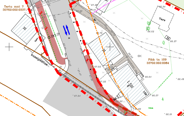Kas Tartu mnt 7 juures võiks planeeritud kergliiklustee nii jääda nagu joonisel või saaks kergliiklusteed planeerida sõidutee serva, nii nagu piakneb ristmiku juures olemasolev kergliiklustee?