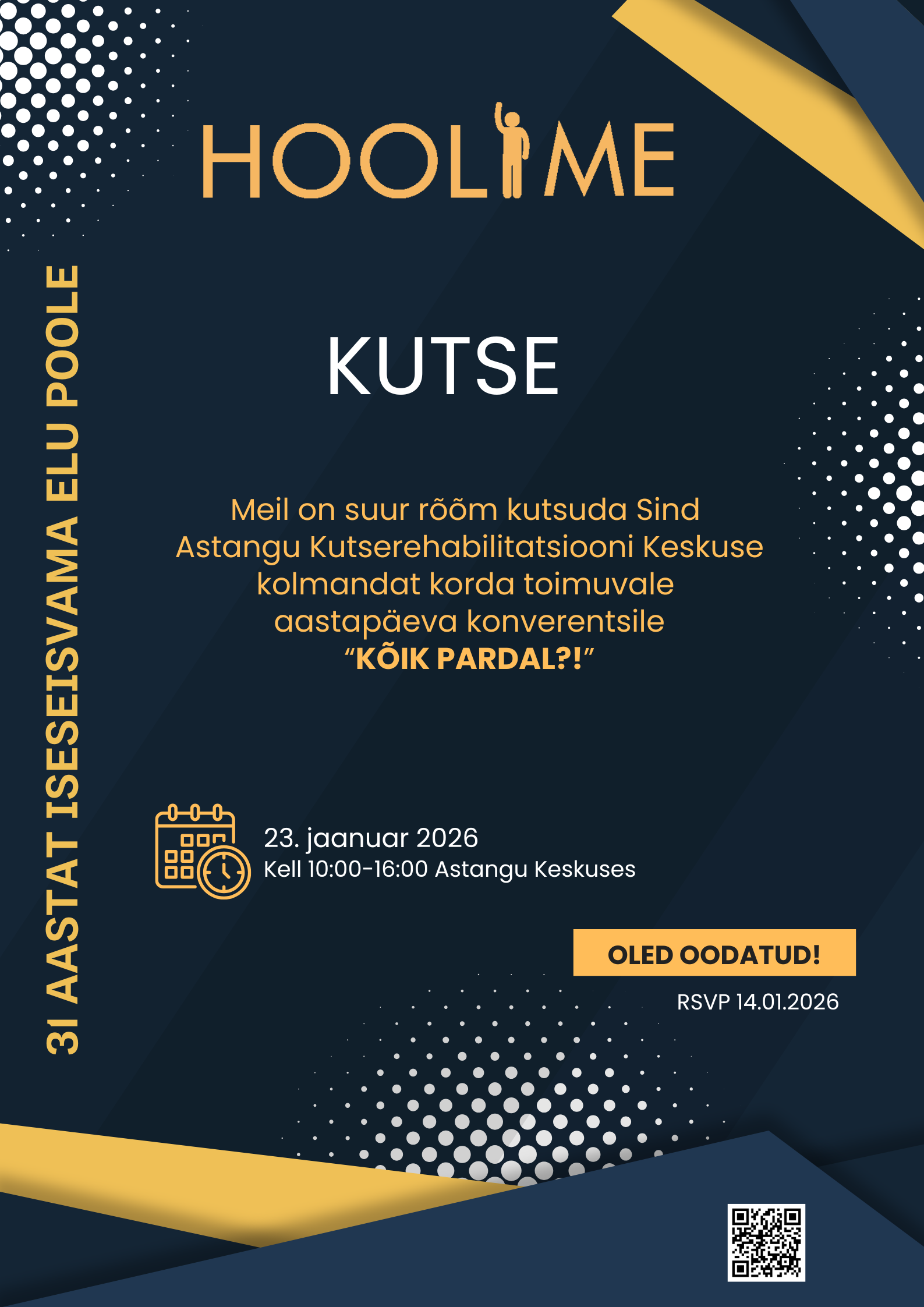Ootame Sind Astangu Kutserehabilitatsiooni Keskuse 31. aastapäeva konverentsile HOOLIME, mille tänavune alateema on “KÕIK PARDAL?!”
