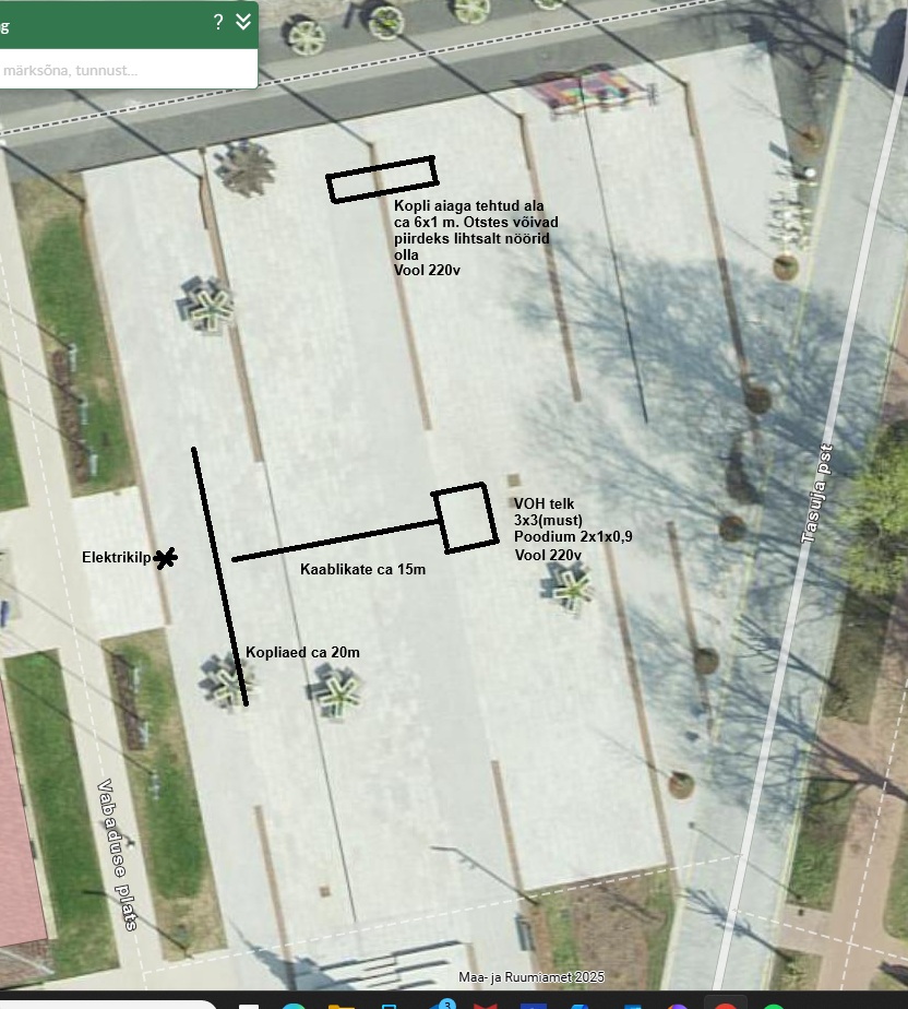 13. Kas ürituse toimumise kohas on kokkulepitud koht, kuhu kiirabi kutsutakse: kokkulepitud saabumise koht on näidatud ala plaanil, Tasuja puiesteel.