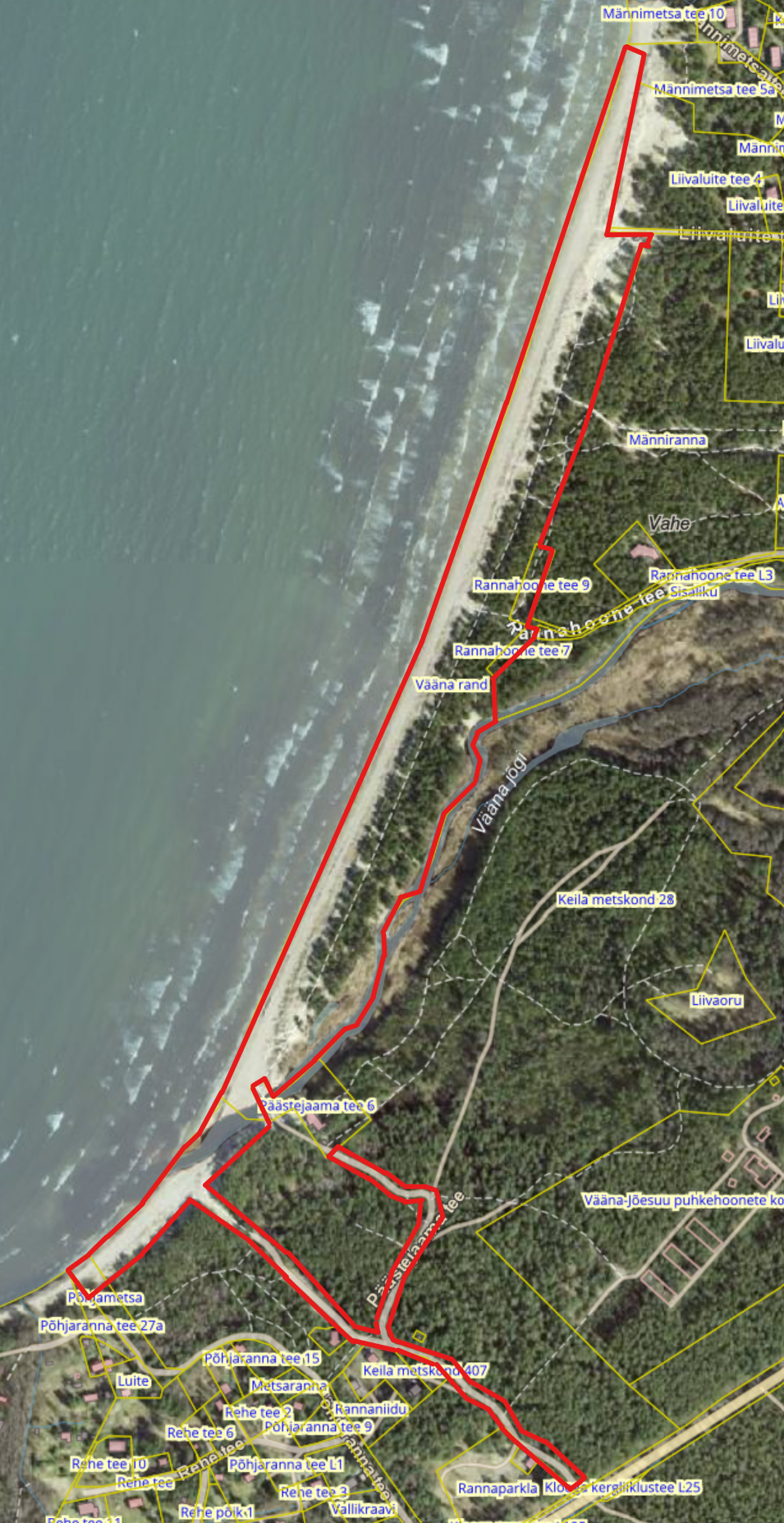 Rannasüdame teel (väljaspool väärielupaikade alasid) ja Päästejaama teel (väljaspool
