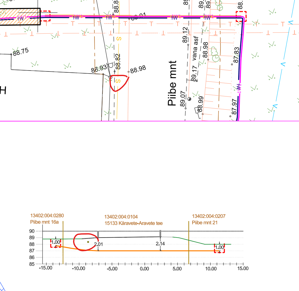 - Projekti juurde lisada ristmevälja joonised, mis vastavad TRAM tehnovõrkude nõuete Lisale 3. Teie poolt koostatud joonis on nihkes.