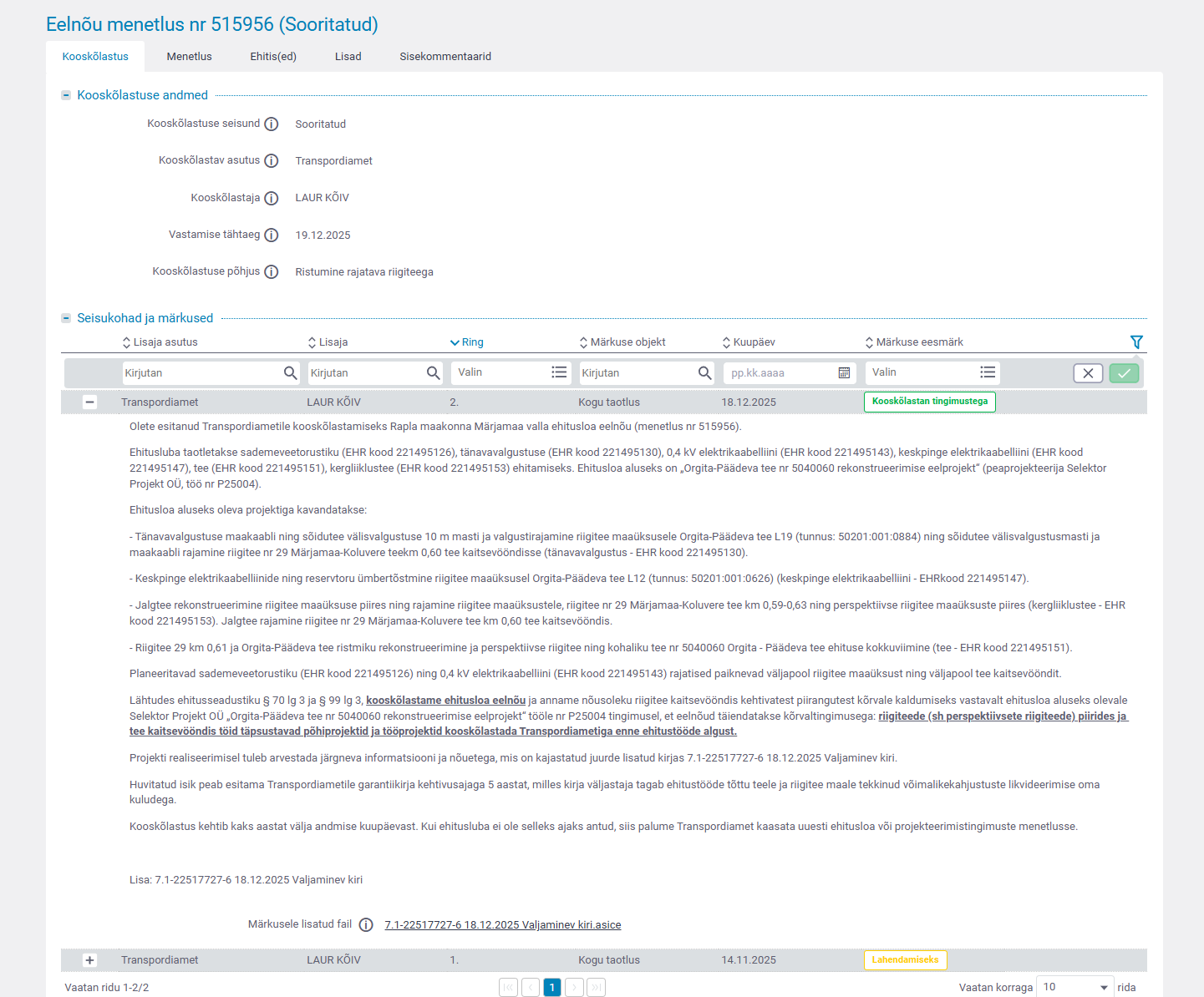 kooskõlastamine märkustega