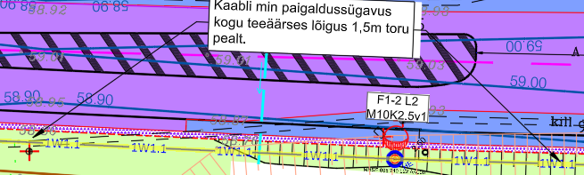 lõigus paigaldussügavus min 1,5m ja kaitsetoru 1250N