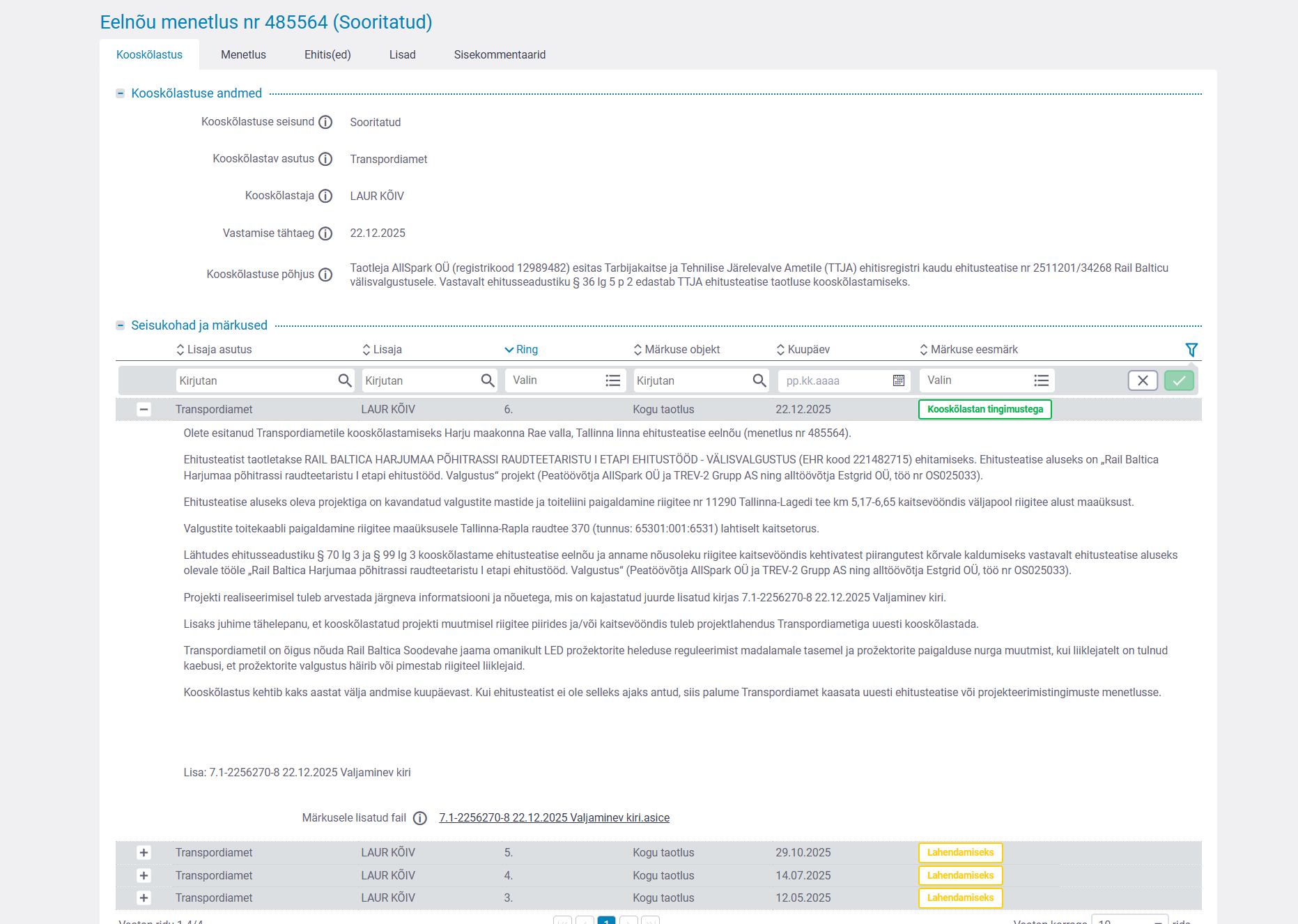 Olete esitanud Transpordiametile kooskõlastamiseks Harju maakonna Rae valla, Tallinna linna