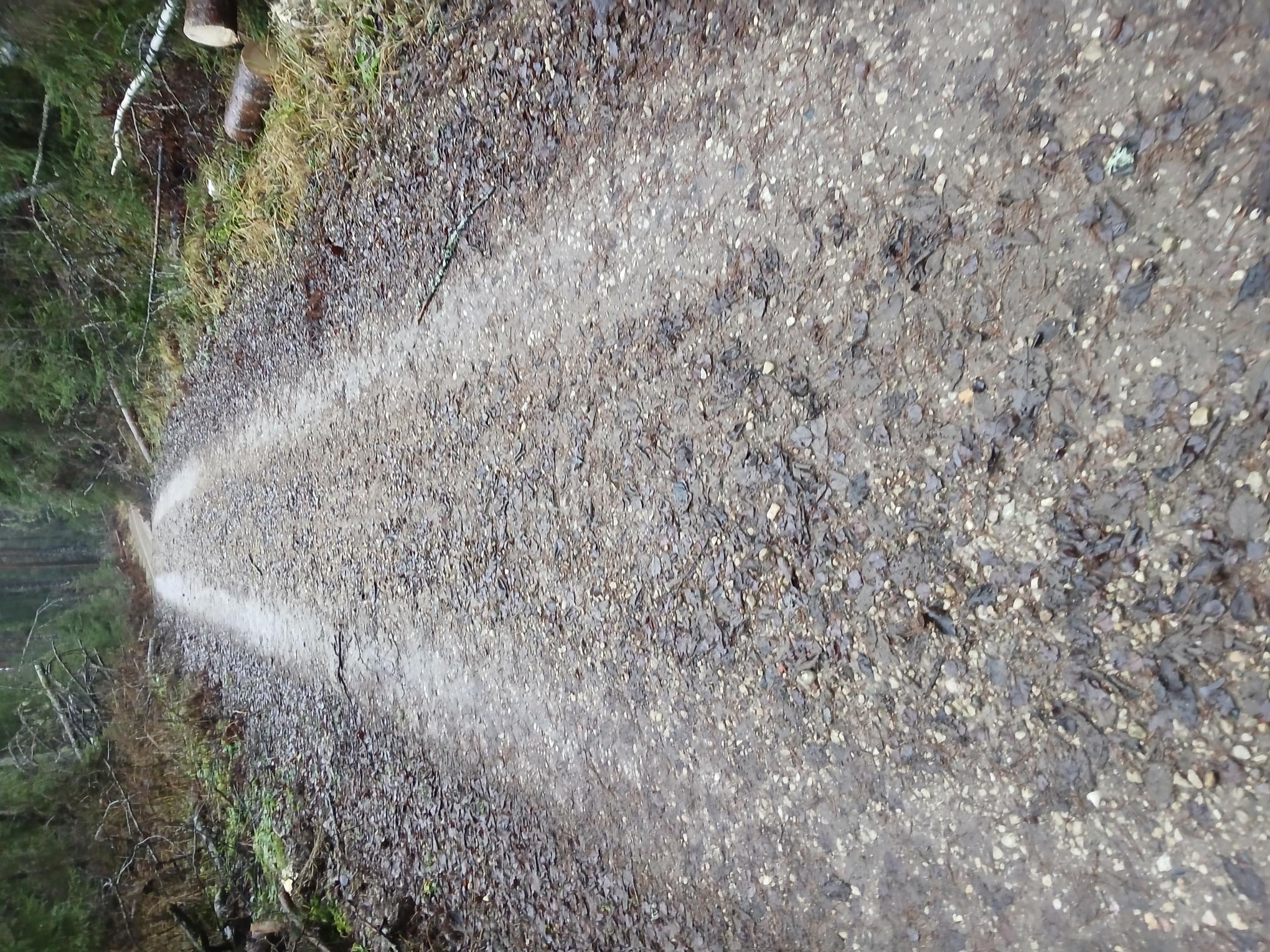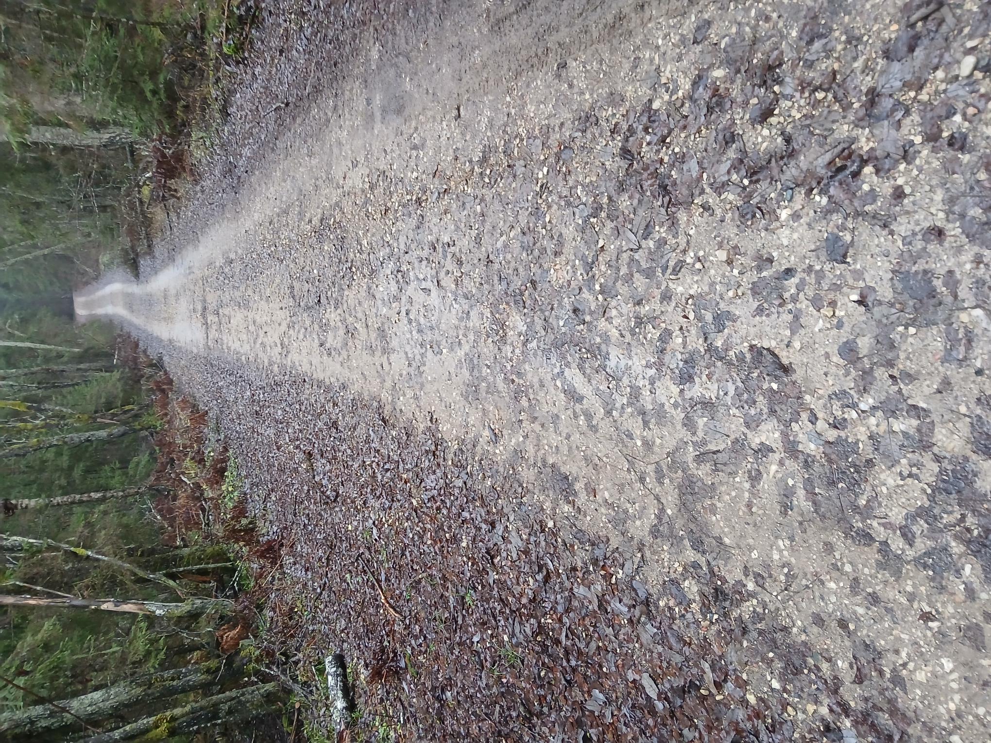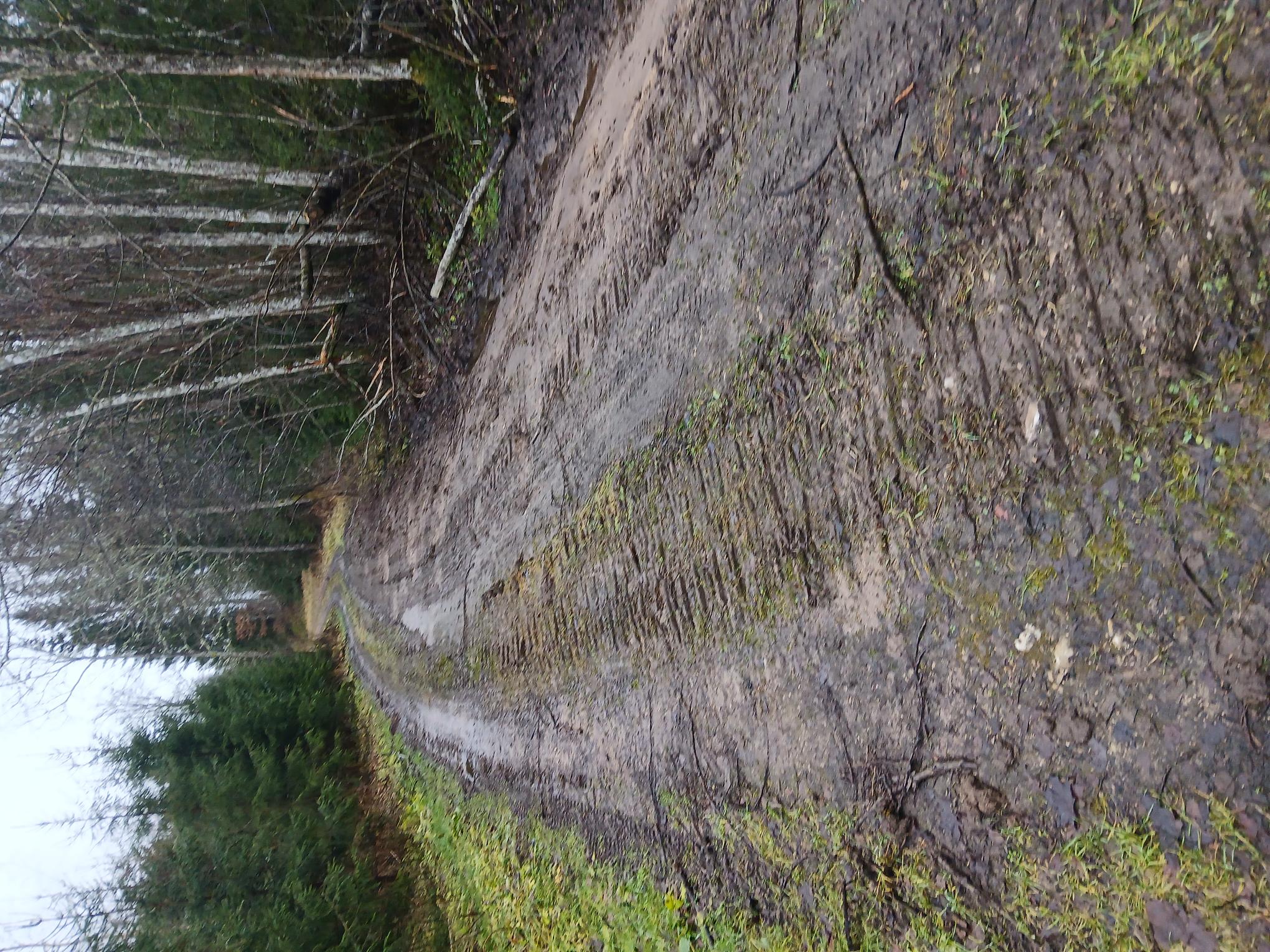 Mitmed kruusatee lõigud kattega. Üks teelõik läbimatu. Rohkesti mahalangenuid puid katte servas,