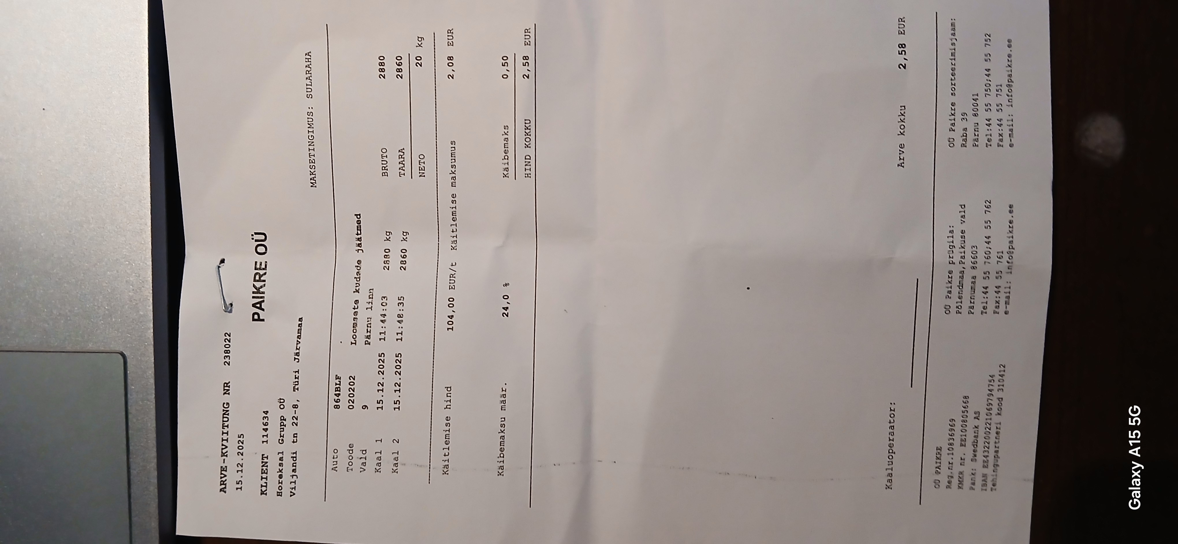 | Saabumis/saatmisviis | Horeksal OÜ |