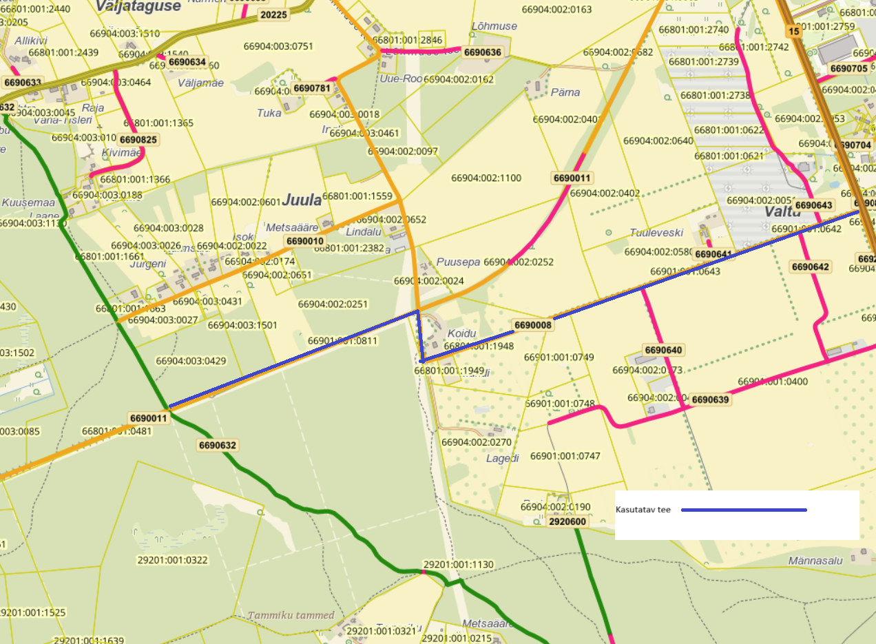 -Väljataguse L2 teed (669008) ja Vanaraudtee L4 teed (6690011). Metsamaterjali veoks