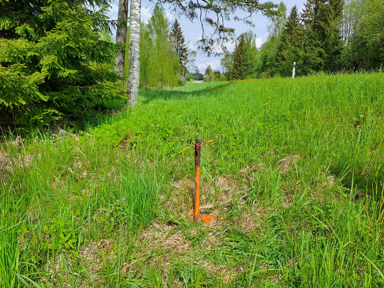 Piirimärk 12 kõrvale on tähiseks paigaldatud suurem metalltoru.