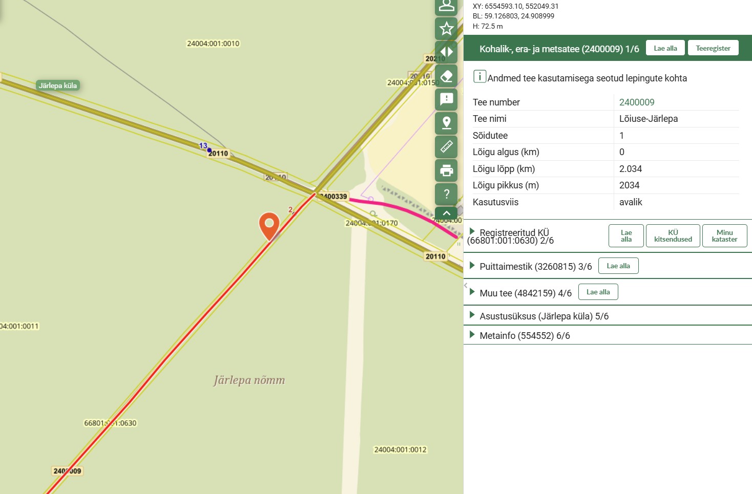 Lõiuse-Järlepa teed (2400009). Metsamaterjali veoks kasutatavad teed on näha Lisa-s 1 oleval