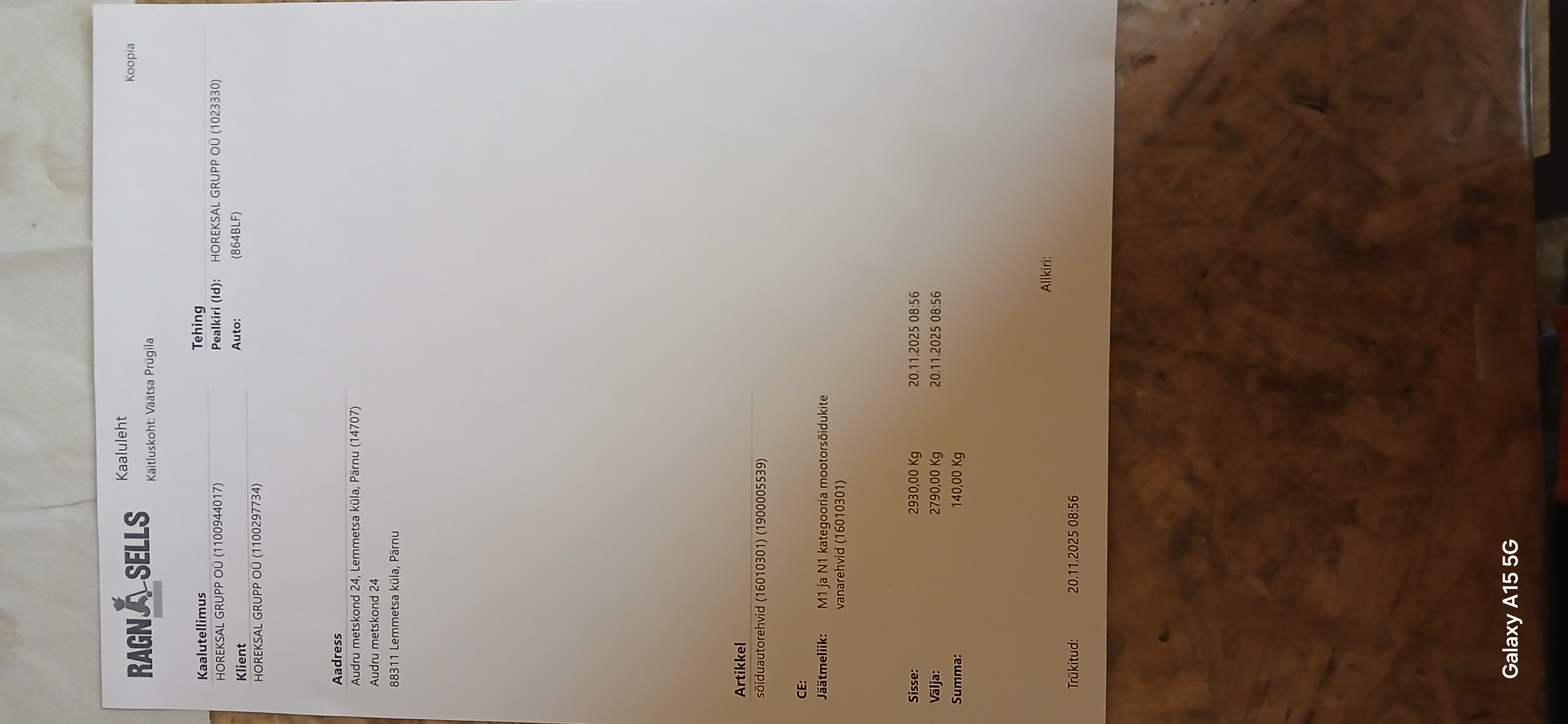 | Saabumis/saatmisviis | Horeksal Grupp OÜ |