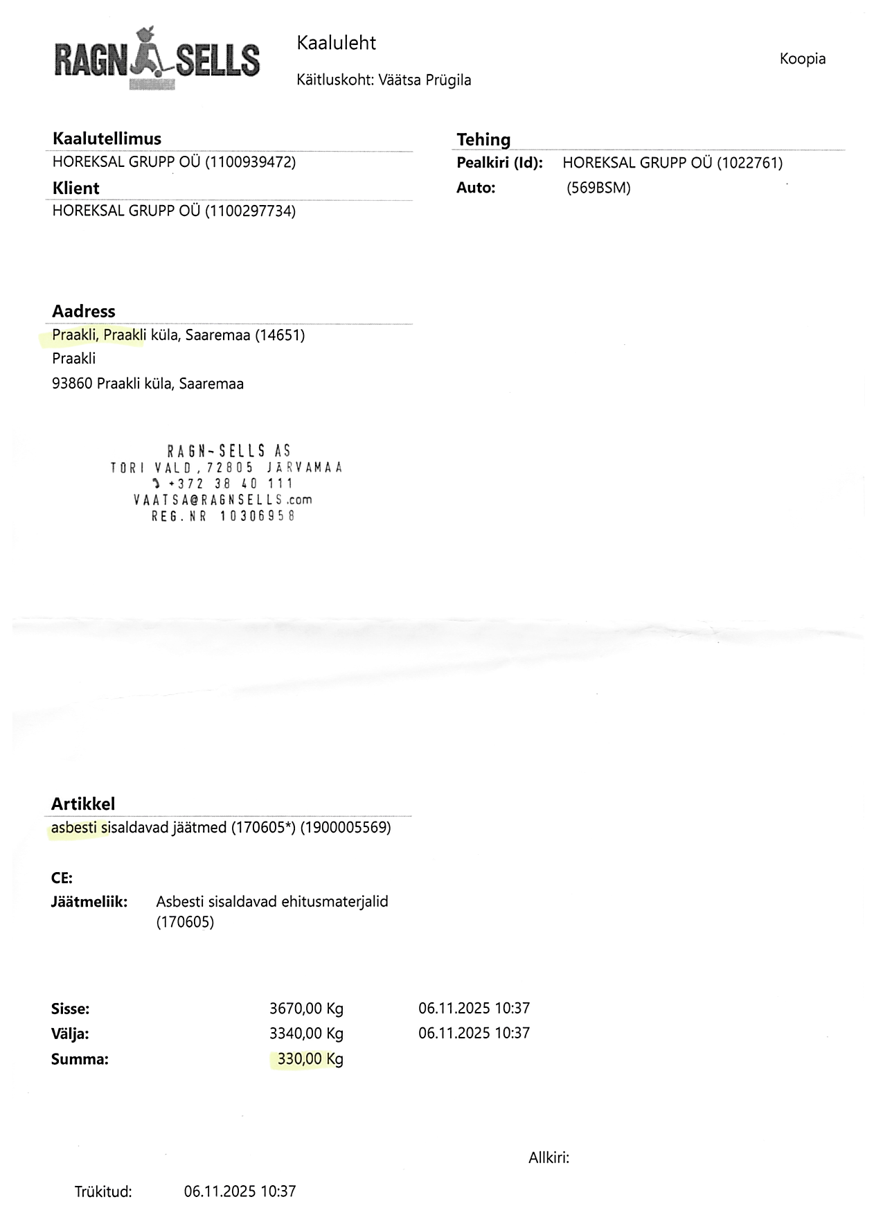 2.1. Lepingu objektiks on RMK hallatavatelt maadelt sinna õigusvastaselt veetud jäätmete
