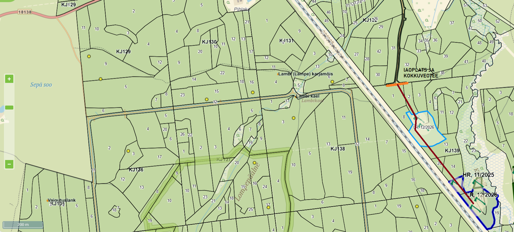 Tere Soovime kooskõlastust piirinaabrilt (EVR), et teostada metsaraie Teie poolt hallatava kinnistuga piirneval alal. Raudteemaal tööd ei tehta ja puid kinnistu peale ei langetata. Panin manusesse loa, mille taotlesime samadel ngimustel Ruusa kandis. Manuses ka joonise, millised raiealad lageraiesse on planeeritud. Lugupidamisega,