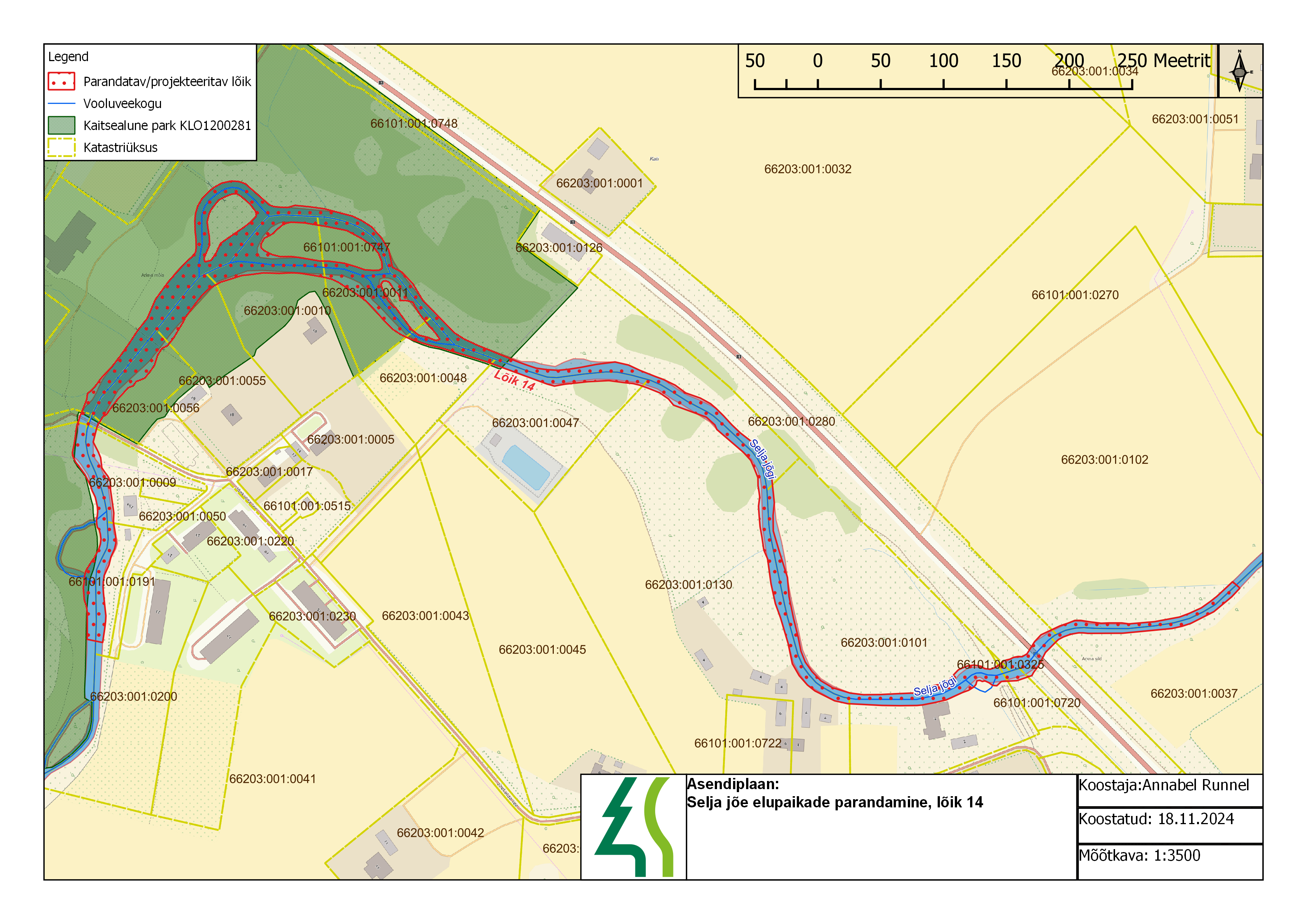Parandatavad lõigud 1-5 asuvad Selja jõe maastikukaitsealal Selja jõe piiranguvööndis, Selja jõgi kuulub