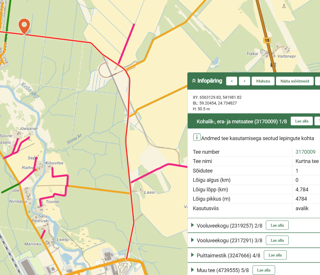 Kurtna teed (3170009). Metsamaterjali veoks kasutatavad teed on näha Lisa-s 1 oleval skeemil.