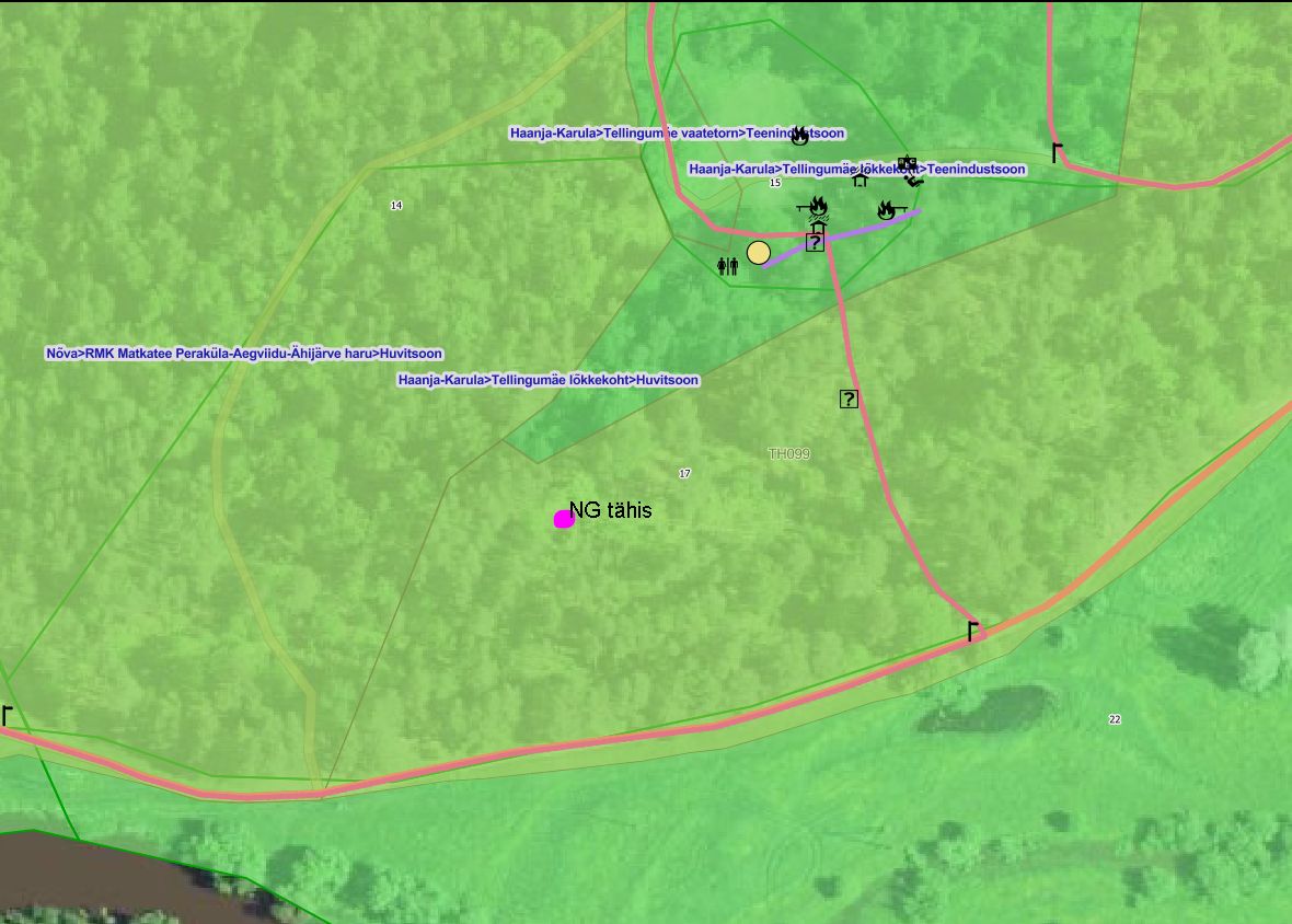 Haanja-Karula Taheva piirkonna puhkeala matkarada, Tellingumäe vaatetorn ning lõkkekoht.