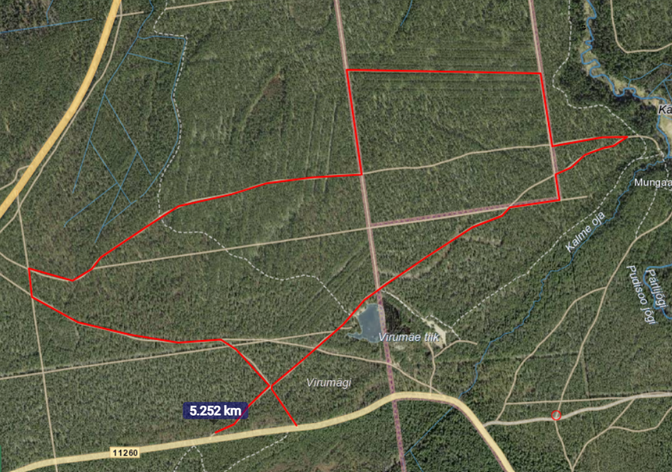 Nagu allolevalt kaardilt näha, siis start ja finiš oleks maantee ääres, kuid rada teie hallatavatel teedel. Võistluskeskus ning autode parkimine jääks tee äärde stardi ja finiši vahelisele alale. Kasutaksime ala orienteeruvalt ajavahemikus 10:00-17:00.