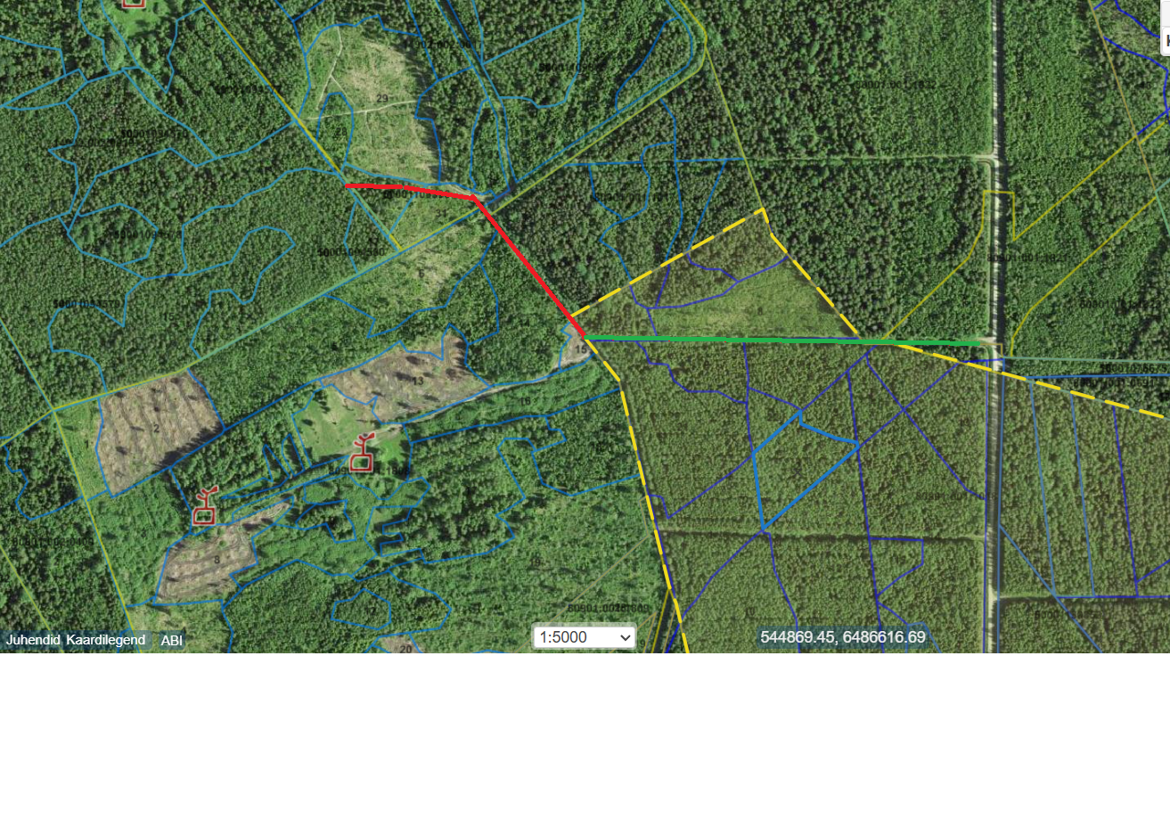 Tere! Pöördun teie poole ühe probleemiga, millega seisan silmitsi Tori vallas, Suigu külas RMK Taali metskond 46, katastri tunnus 80901:001:1018 peal. Olen proovinud saada RMK pärnumaa metsaülema käest väljaveo luba mööda RMK kvartalisihti, kuid juba kolm korda olen saanud eitava vastuse. Pakkusin välja idee,et praaker tuleks metsa kohapeale ja ma näitaks ideed reaal olukorras ära, sellest keelduti. Olen oodanud õiget ilma ja proovinud luba saada suve algusest alates. Soovitati talve oodata, samas kui ma ei eksi siis samal katastritunnusel käivad praegu RMK raietööd. Kvartalisihi pealt tuleks ainult eest ära võtta lume vaalunud noored kased ja lepad. Kohe peale tööde lõppemist siluks kopaga väljaveo tee ära. Meil oleks plaanis raiuda Saare 14902:002:0019 kinnistut, raiemaht ca 3000tm. Muid alternatiivseid väljaveo võimalusi seal kahjuks ei ole. Lisan manuses skeemi. Planeeritav RMK maa pealt väljavedu rohelise värviga. Kas ja missuguseid lahendusi antud olukorrale oleks? Parimat Andi Noot Torgu Mets OÜ 5235733