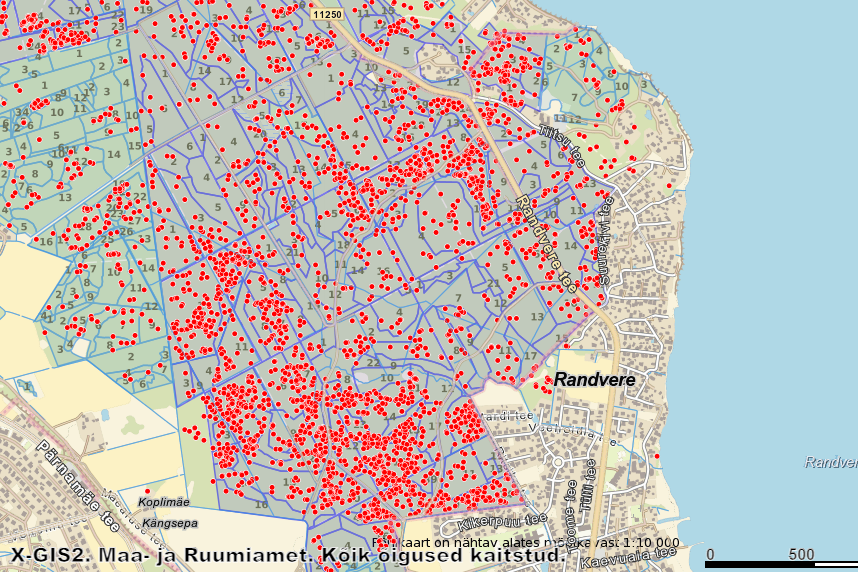 Viimsi valla Mäealuse maastikukaitseala enamkahjustatud kuusikud. Seal on Maa-ameti kaartdirakenduse