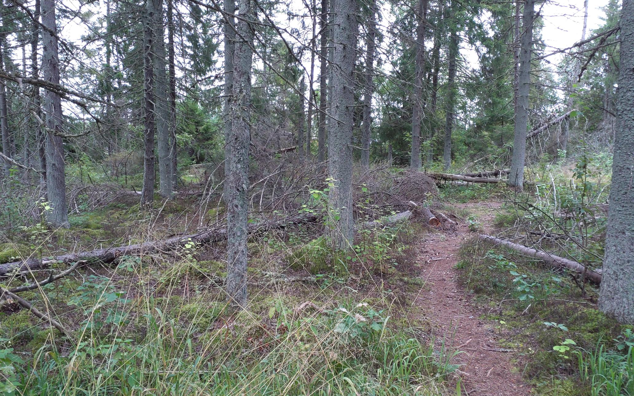 Viimsi valla Mäealuse maastikukaitseala enamkahjustatud kuusikud. Seal on Maa-ameti kaartdirakenduse