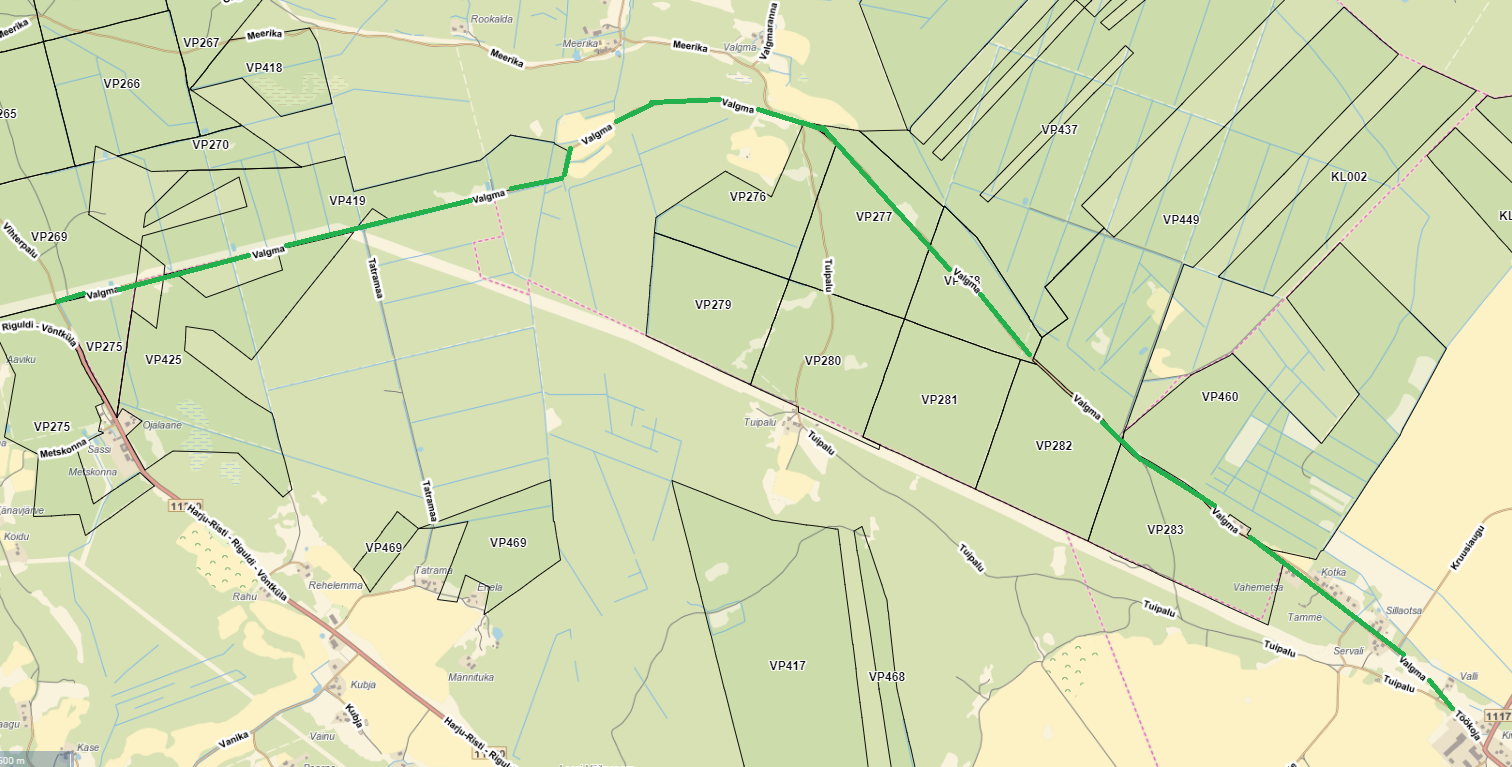 kuuluvat Valgma teed (5620014) 56201:001:1317. Metsamaterjali veoks kasutatavad teed on näha