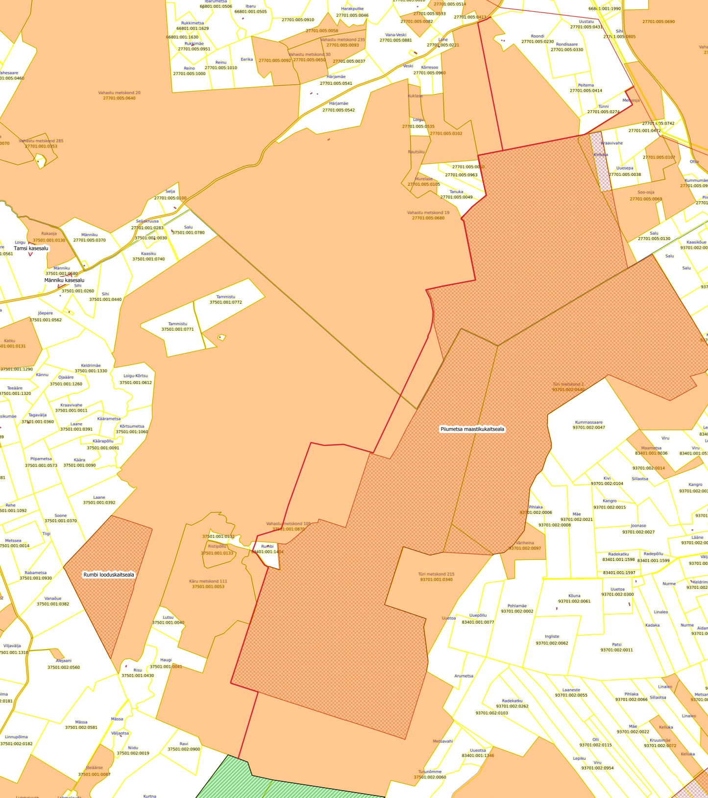 Suured tänud kiire tagasiside eest! Saan aru, et peamine mure on need lõigud, mis on Piiumetsa maastikukaitseala sees (vt lisatud joonisel sinisega). Kas selliselt oleks mõeldav, kui kaabel kulgeb Piiumetsa maastikukaitseala piiril või peaks sealt ka selle kaabli eemale tõstma?