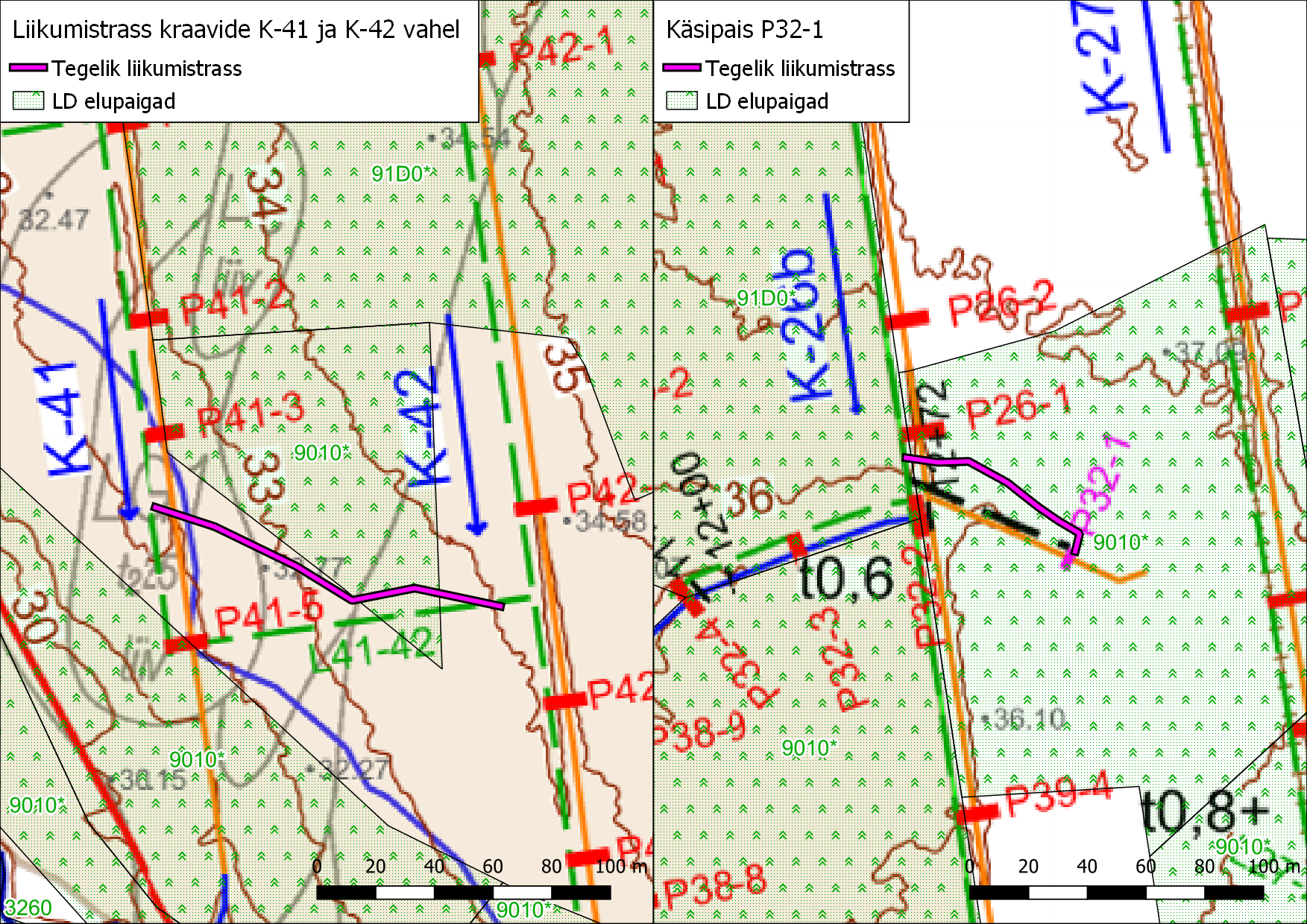1. Kraavide K41 ja K42 vahel on 125 m pikkusel lõigul liigutud väljaspool projektis näidatud