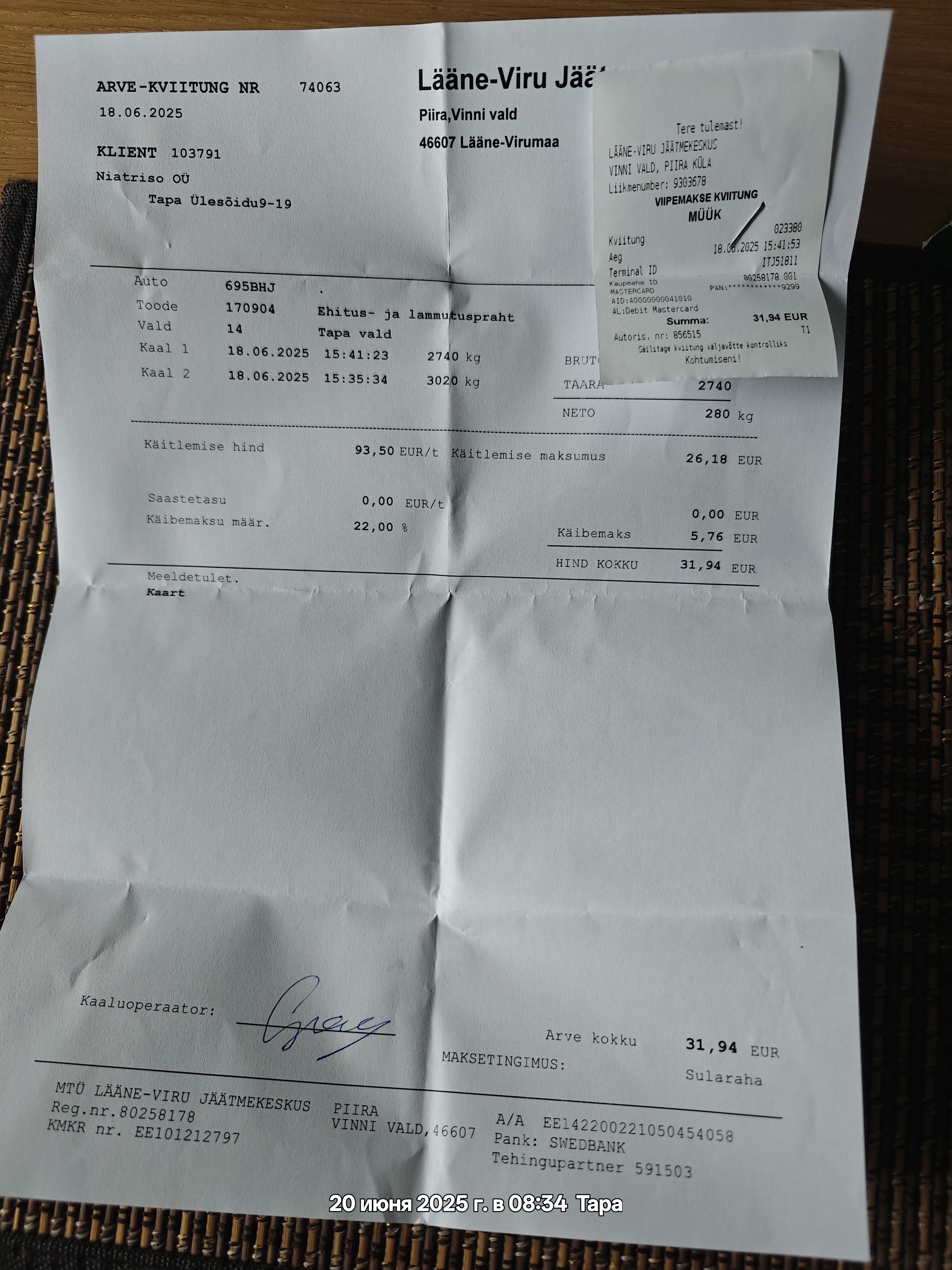 2. Tellija on koristatud prügiobjektid üle vaadanud, töö on teostatud korrektselt ja nõuetekohaselt.