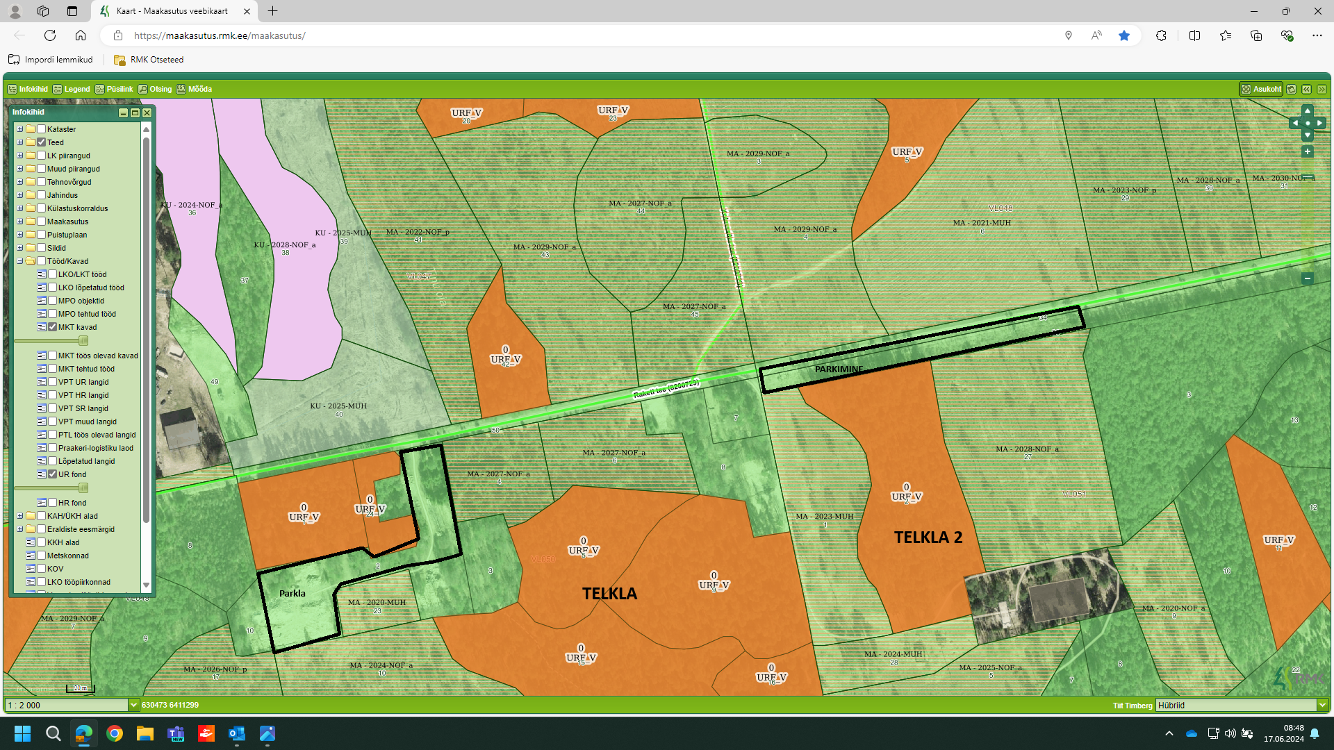 parkimisalad ja telkimisalad (ainult küpses metsas-kaardil tähisega URF!) .