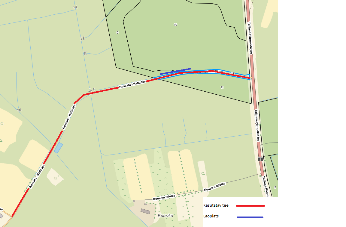 Russalu–Katla teed (5040029). Metsamaterjali veoks kasutatav tee on näha Lisa-s 1 oleval
