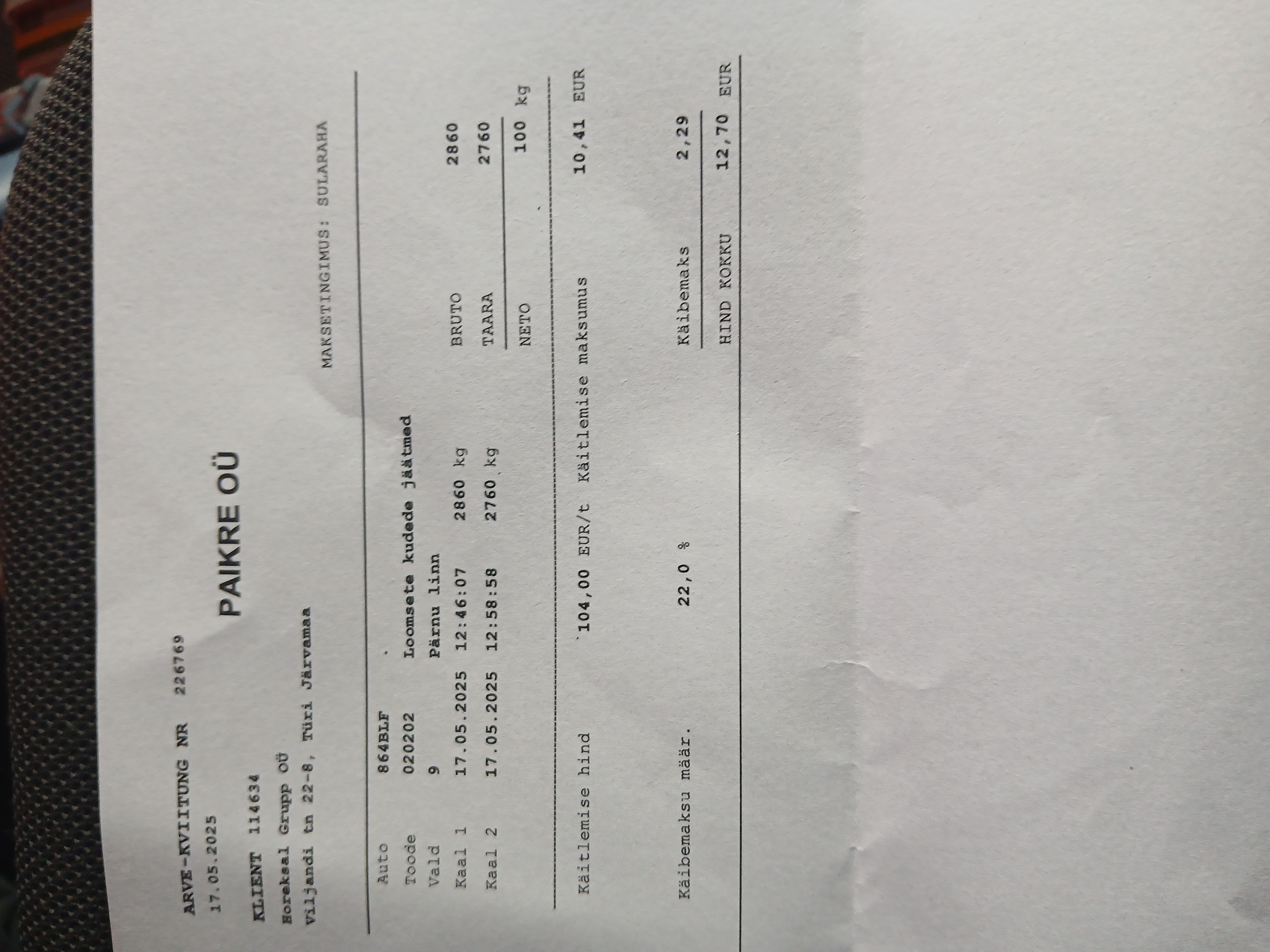 | Saabumis/saatmisviis | Horeksal Grupp OÜ |