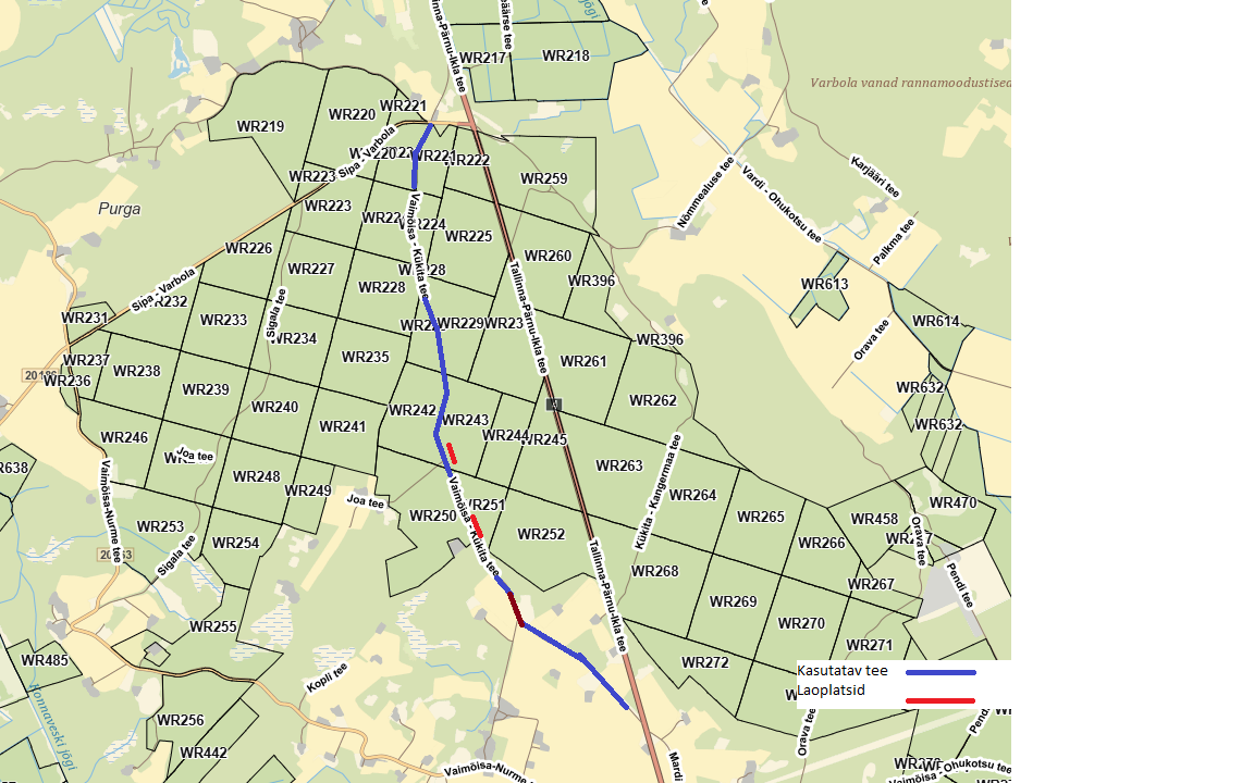 Vaimõisa-Kükita teed (5040005). Metsamaterjali veoks kasutatavad teed on näha Lisa-s 1 oleval