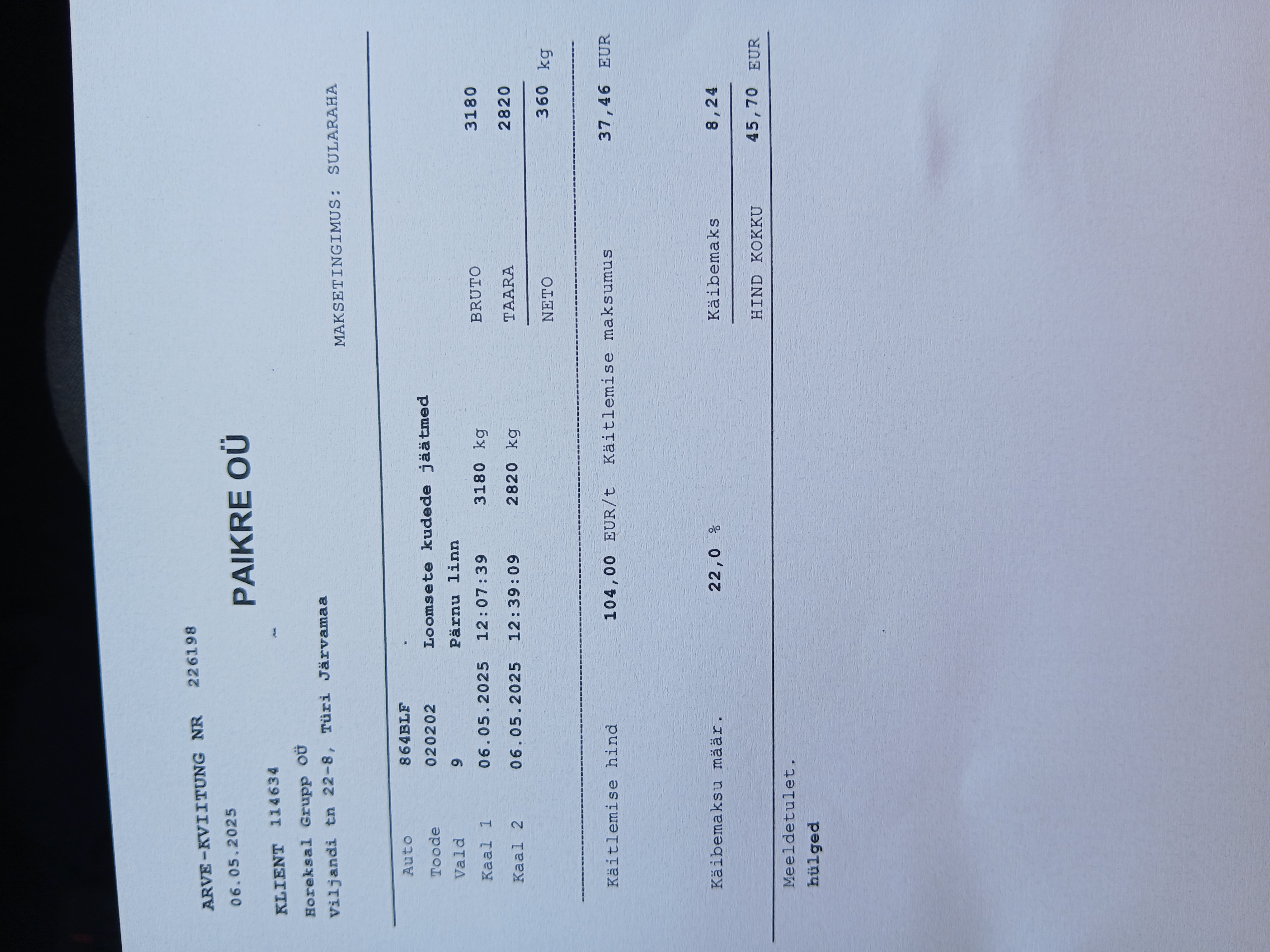 | Adressaat | Horeksal Grupp OÜ |