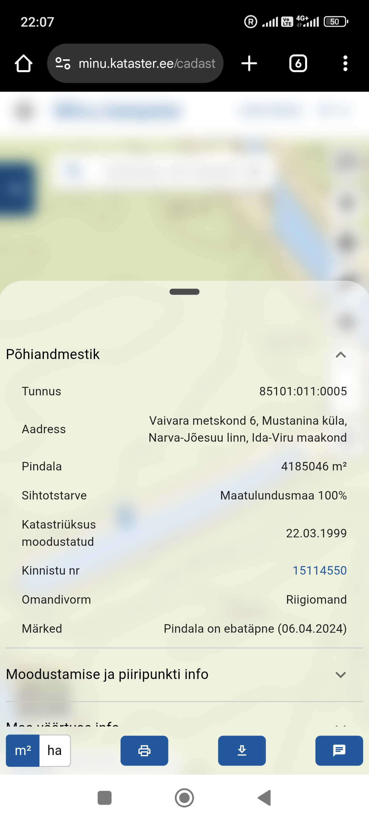 From: "Katrin Viet" <[email protected]> Sent: 4/25/2025 12:50:04 PM To: "RMK" <[email protected]> Cc: <[email protected]> Subject: FW: Päring www.kataster.ee rakenduse kasutaja poolt!