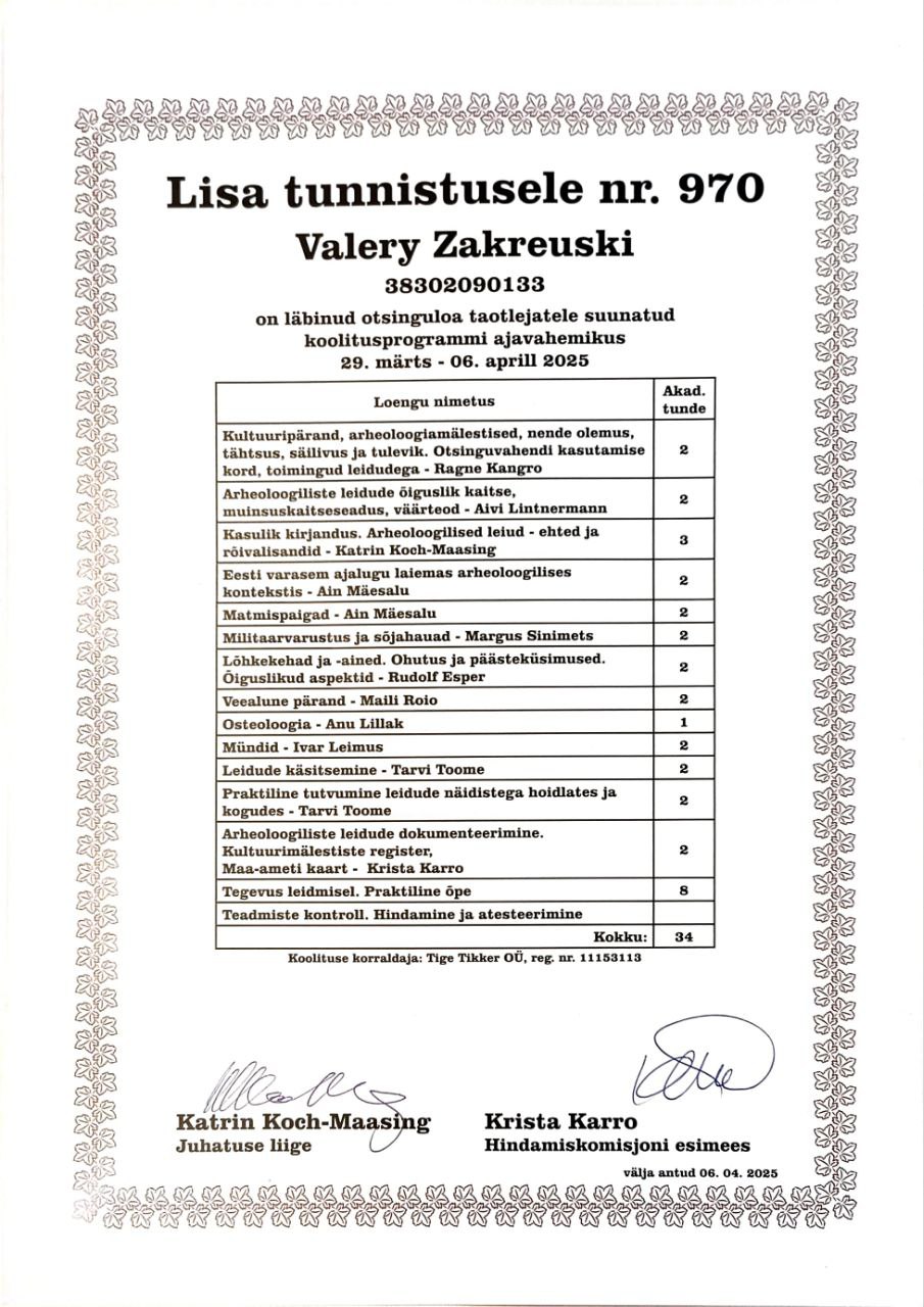 ПОЯСНЕНИЕ И НОМЕР ССЫЛКИ Muinsuskaitseamet. Otsinguvahendi loa riigilõiv. VALERY ZAKREUSKI / 2900082359