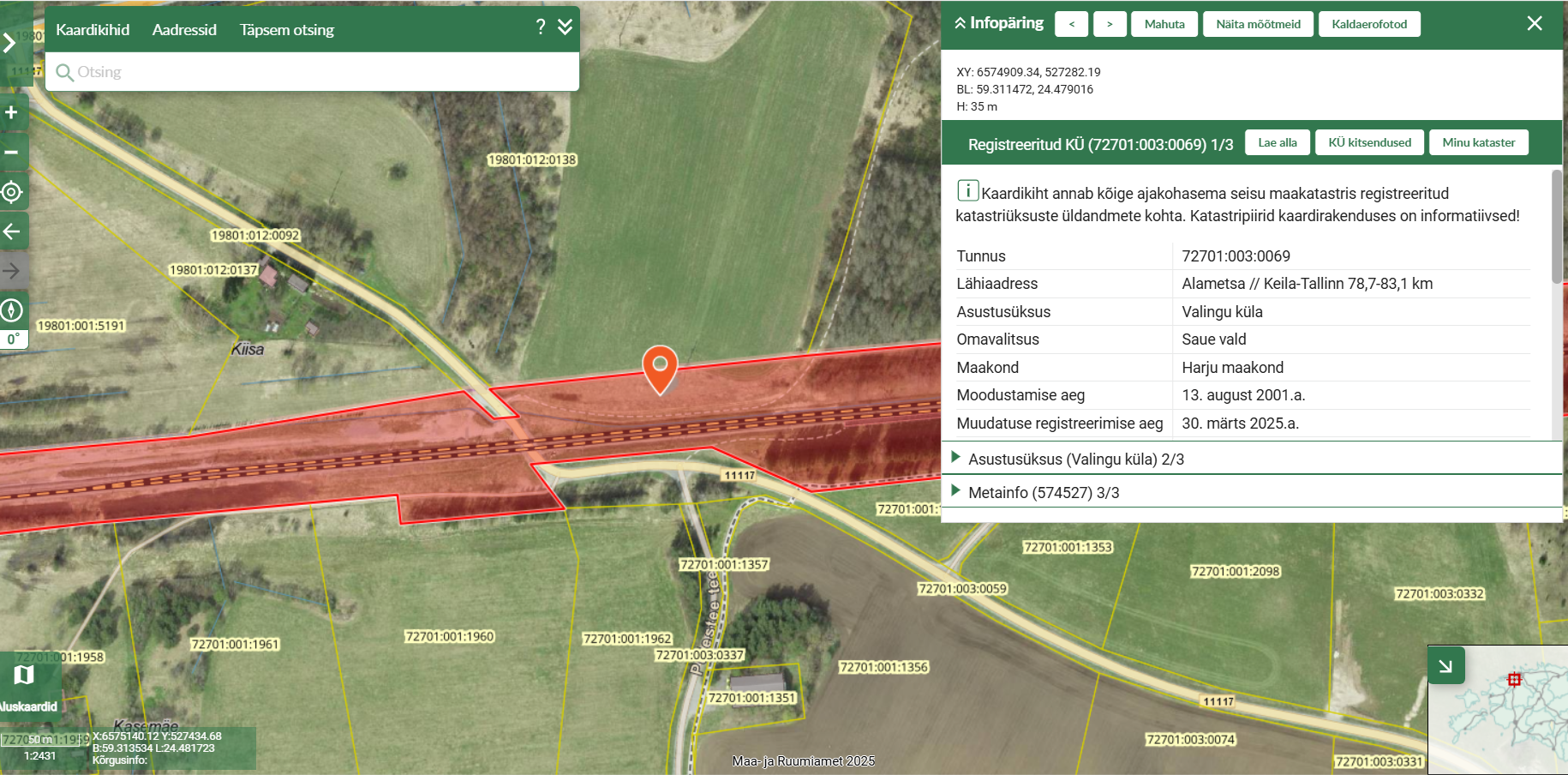 Leht 2/2 X-GIS2. Maa- ja Ruumiamet. Kõik õigused kaitstud.